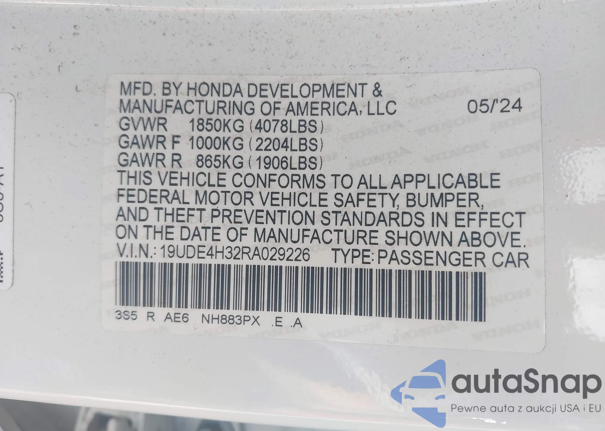 LOT: 42865093 VIN: 1HGCV1F40JA112518