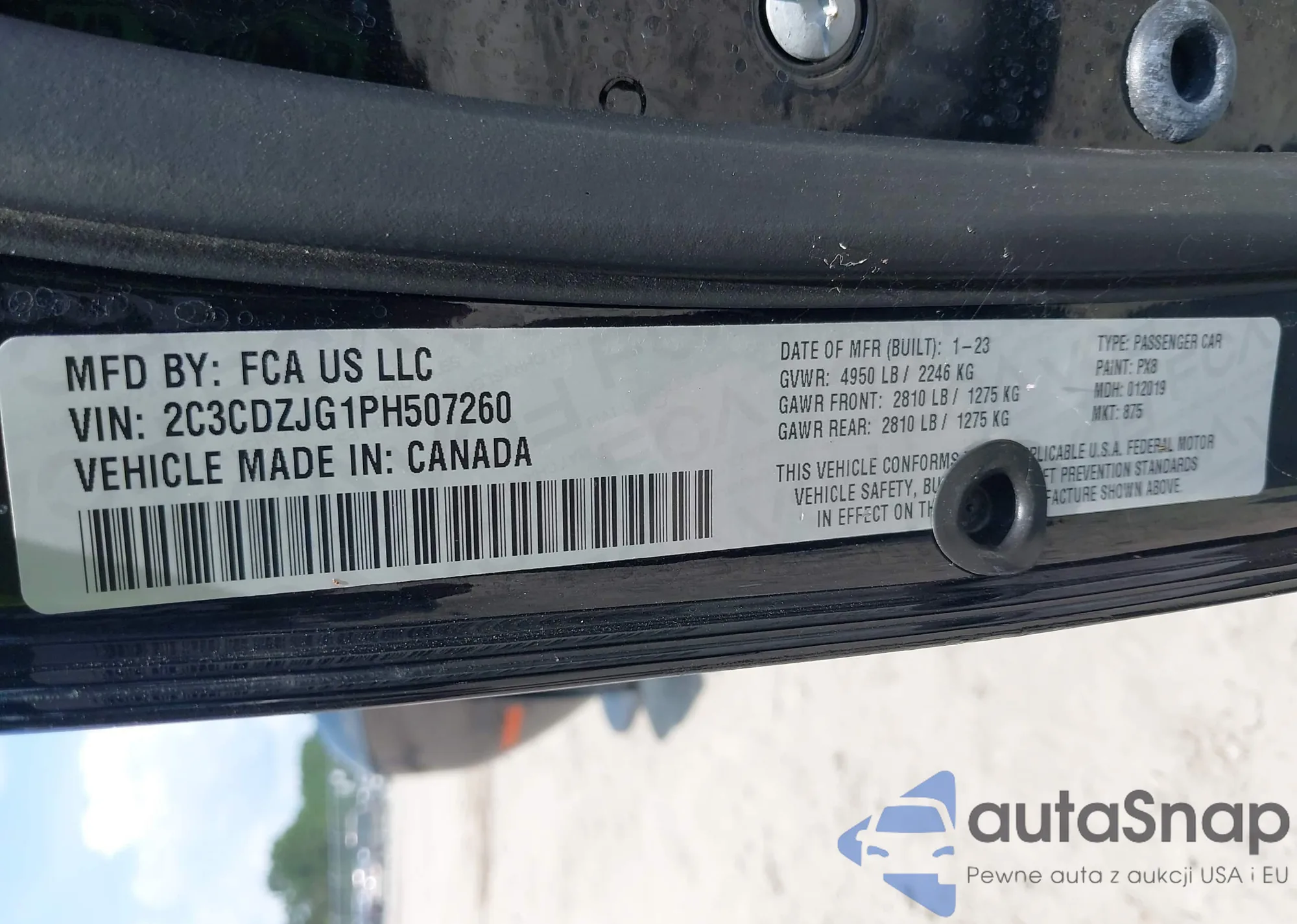 • VIN 2C3CDZJG1PH507260