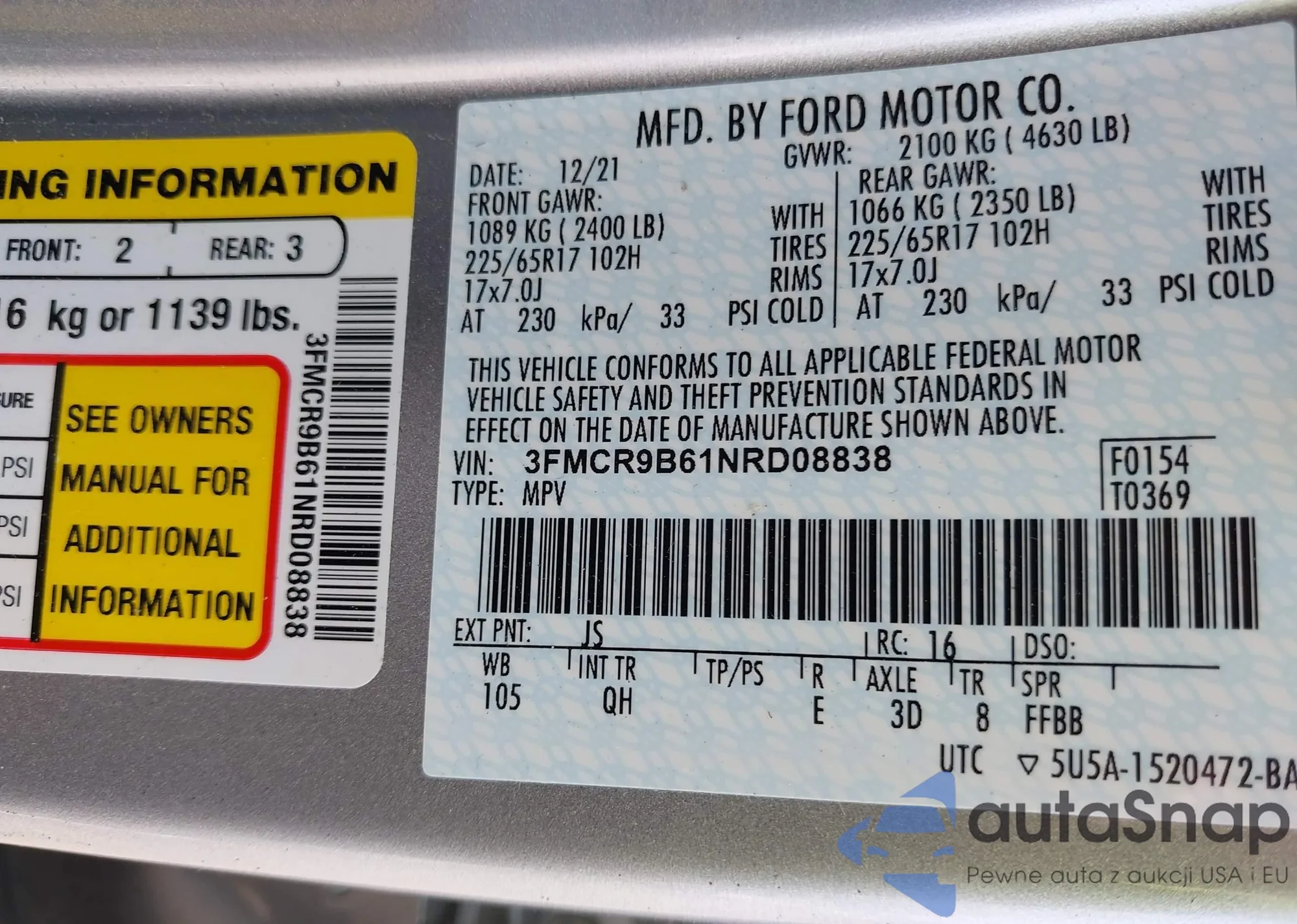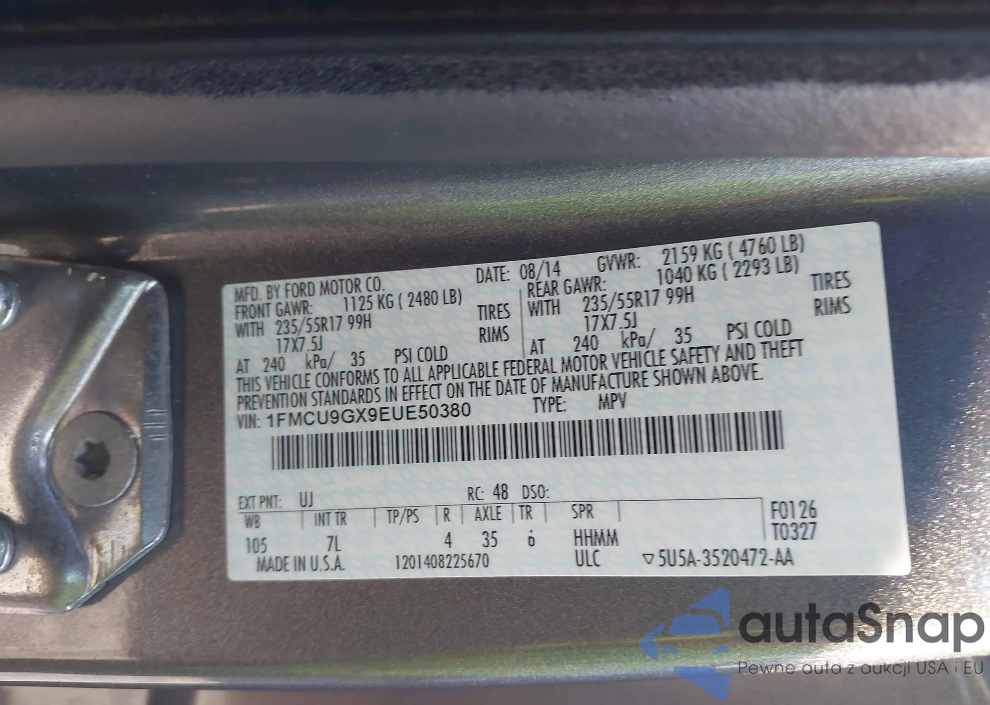 • VIN 1FMCU9GX9EUE50380