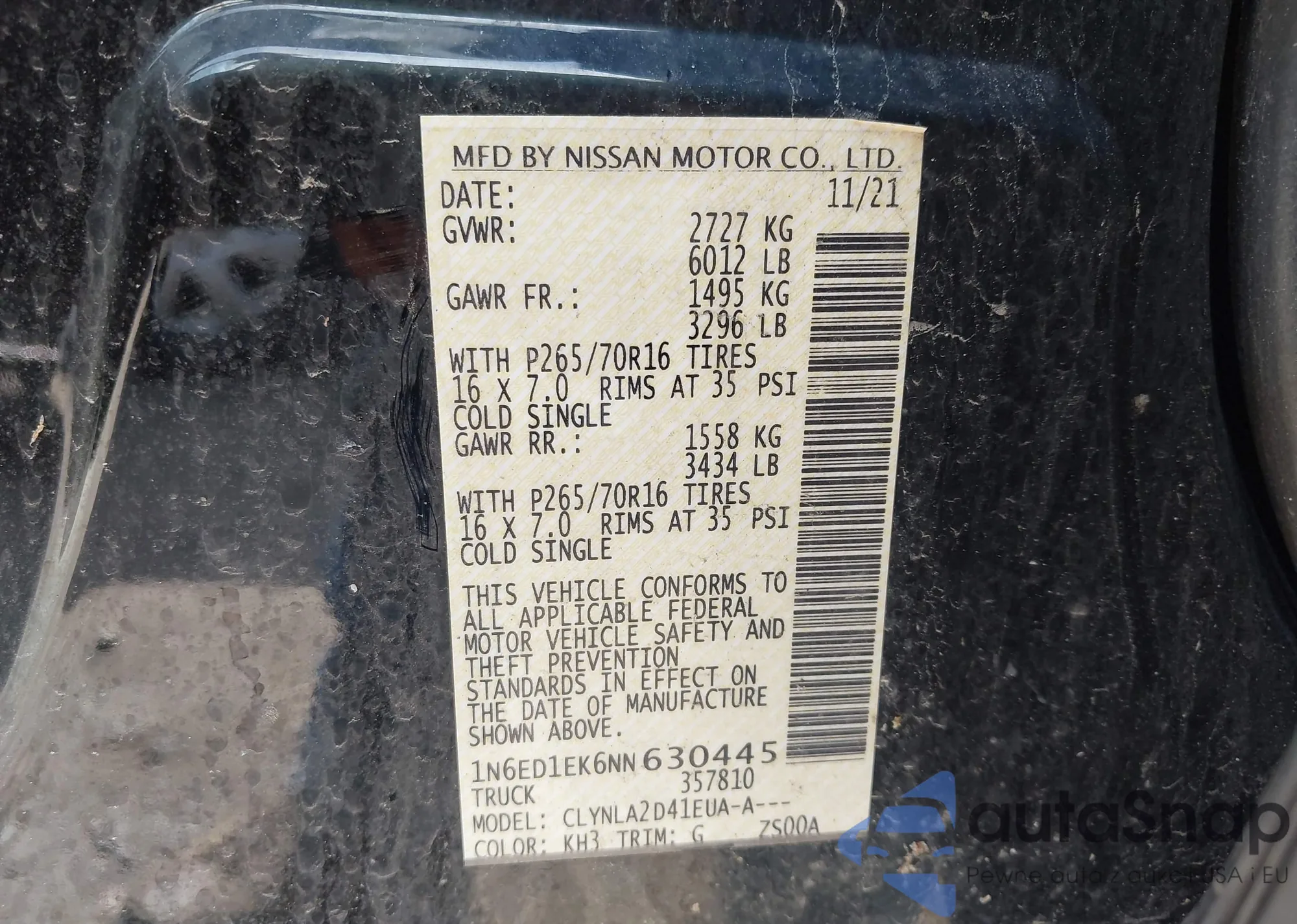 • VIN 1N6ED1EK6NN630445