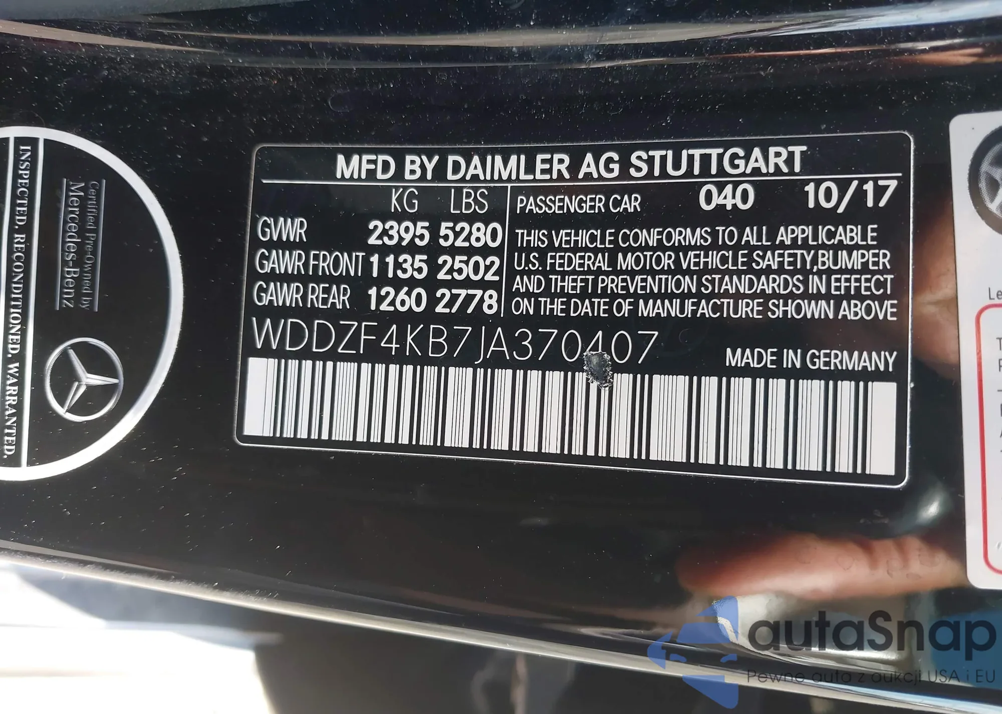 • VIN WDDZF4KB7JA370407
