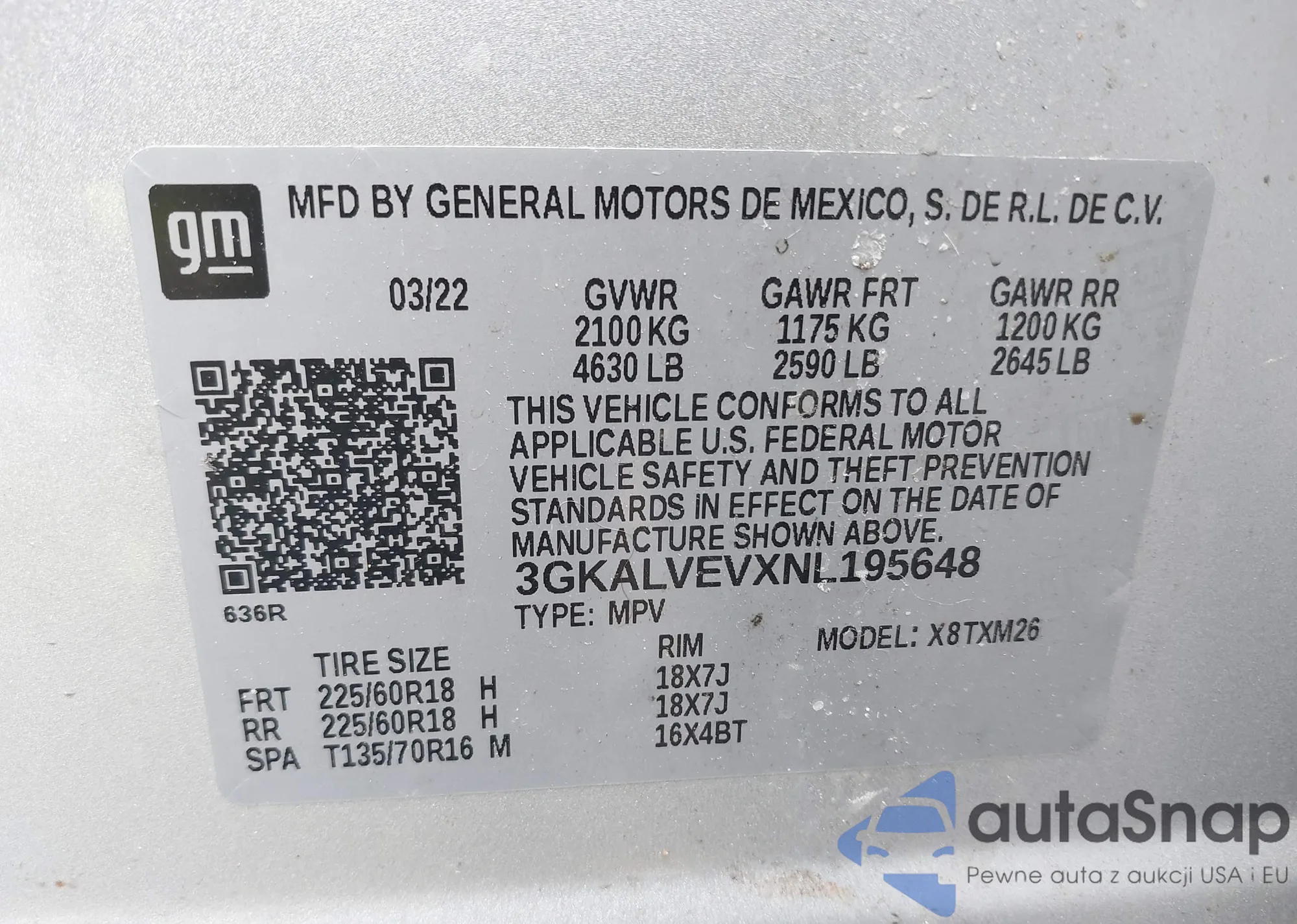 • VIN 3GKALVEVXNL195648