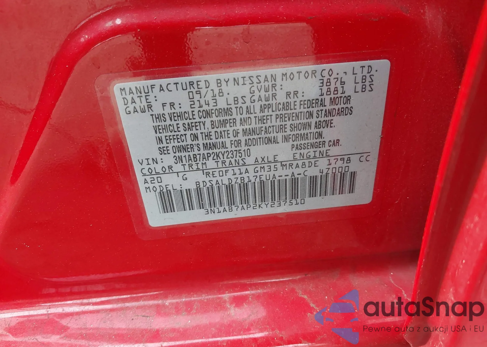 LOT: 42526804 VIN: WDD2J5JBXKA033559