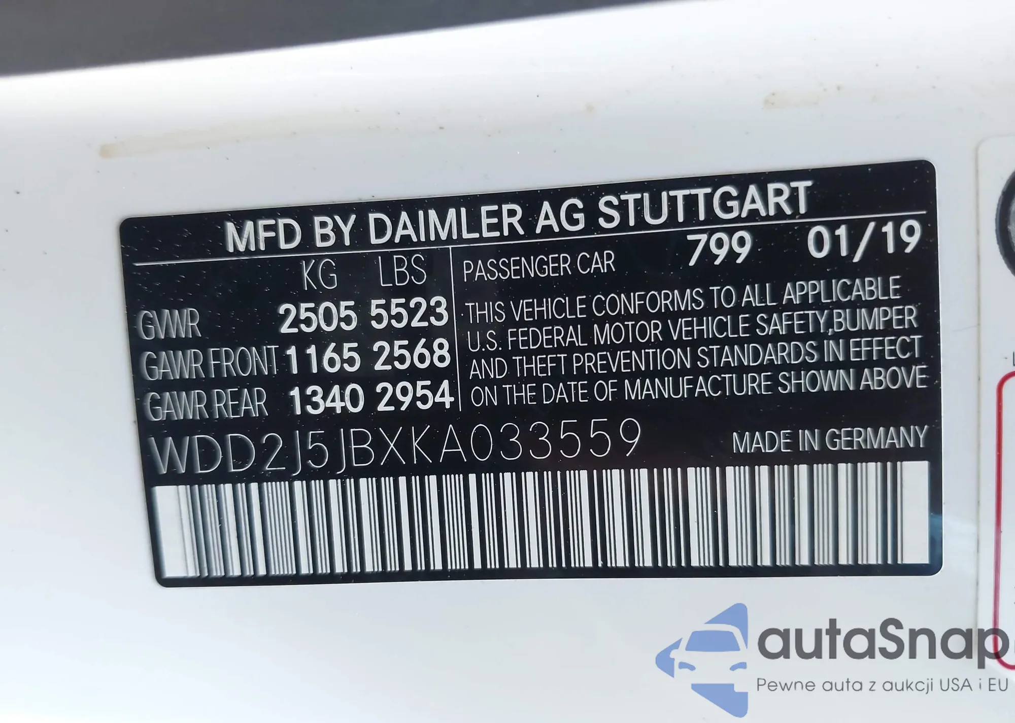 • VIN WDD2J5JBXKA033559