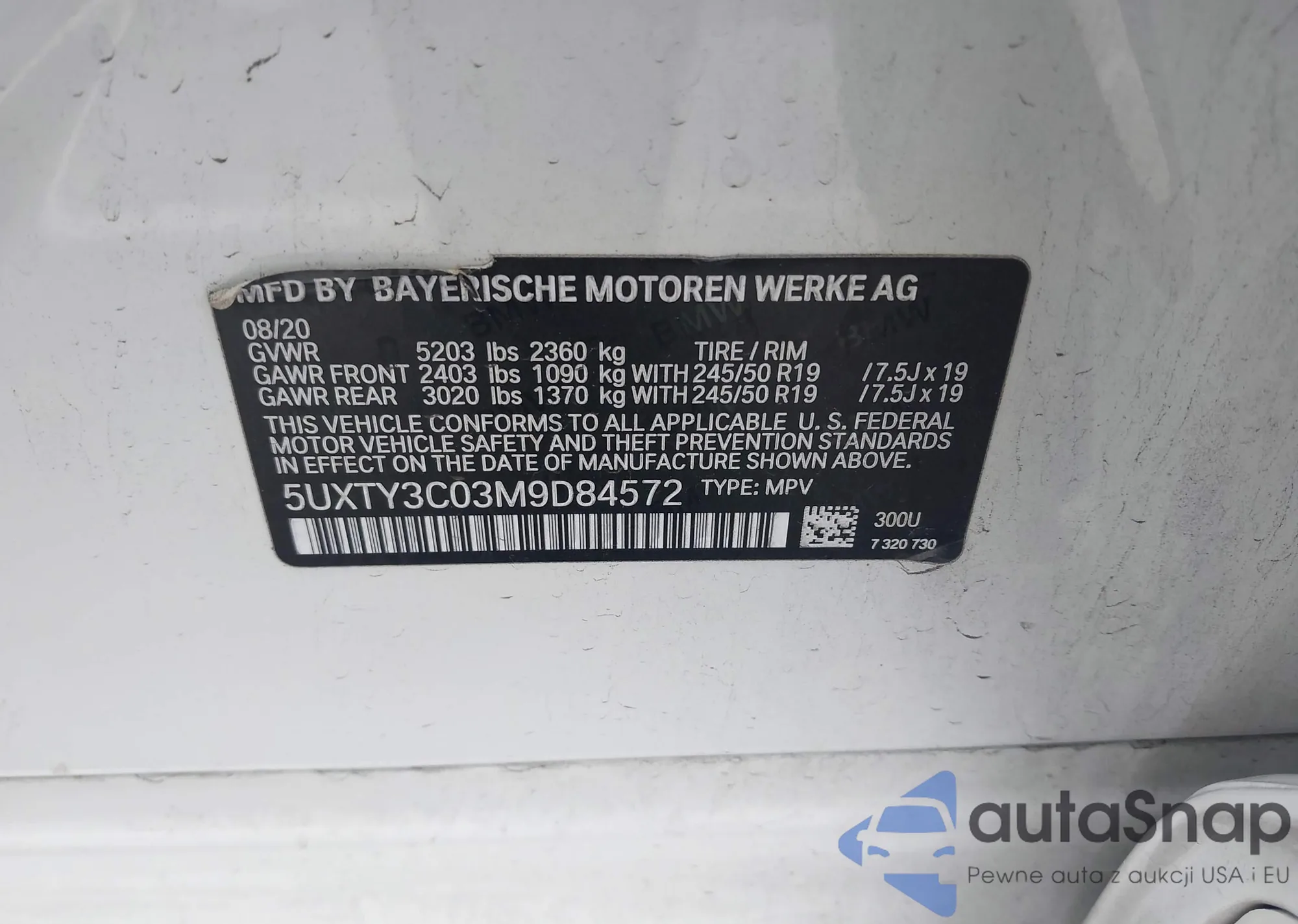 • VIN 5UXTY3C03M9D84572