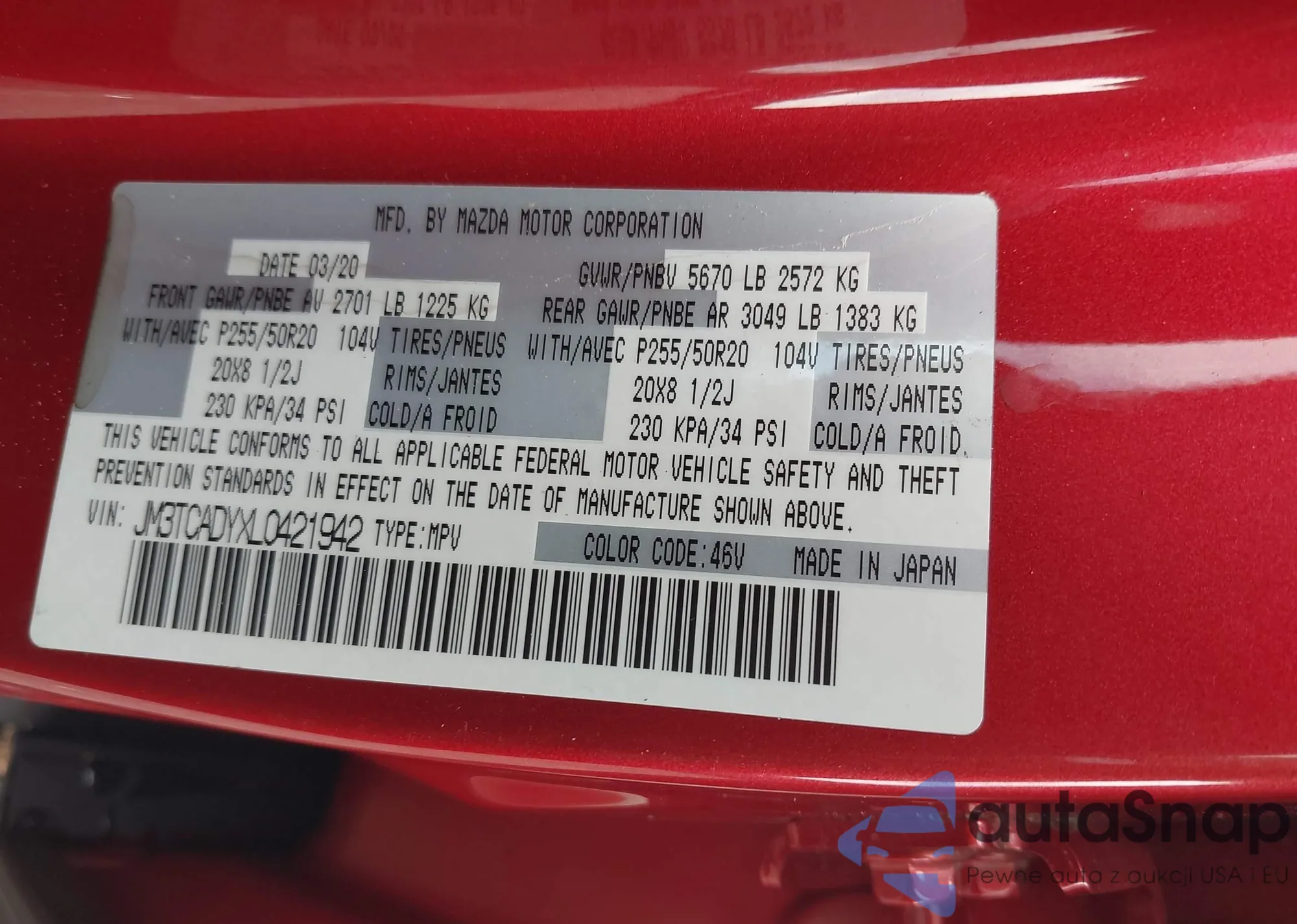 LOT: 42804023 VIN: JM3TCADYXL0421942