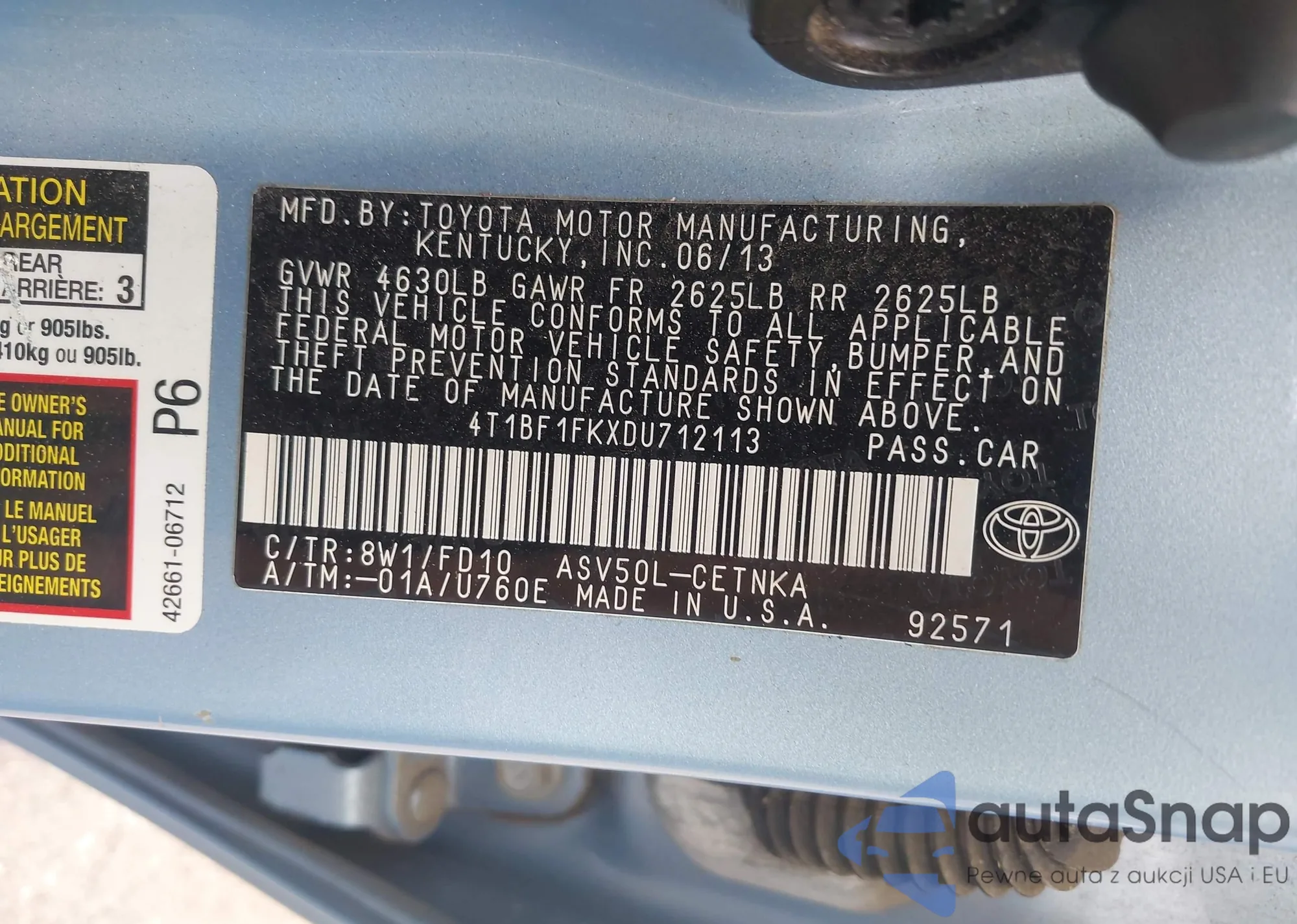 • VIN 4T1BF1FKXDU712113