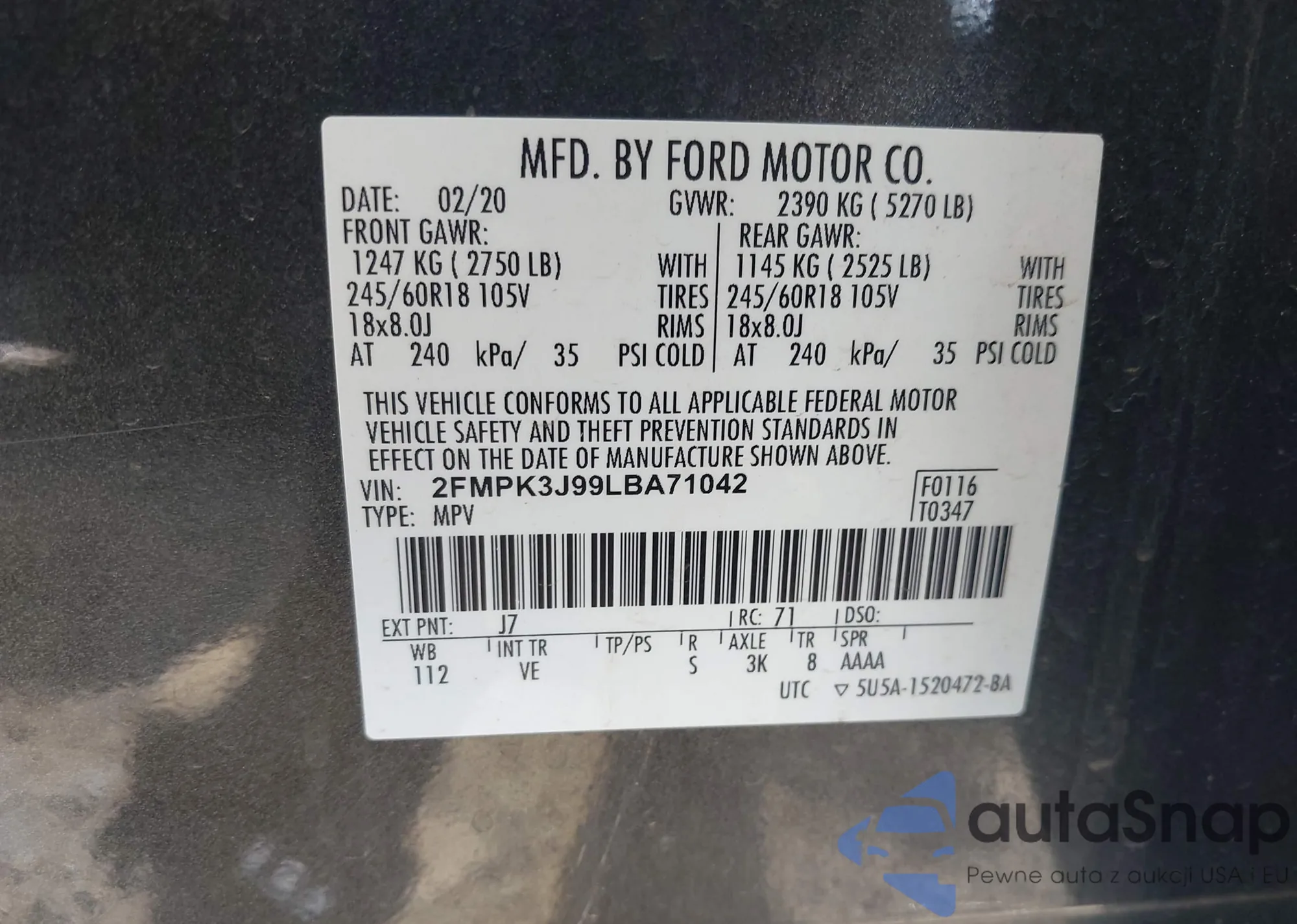 • VIN 2FMPK3J99LBA71042