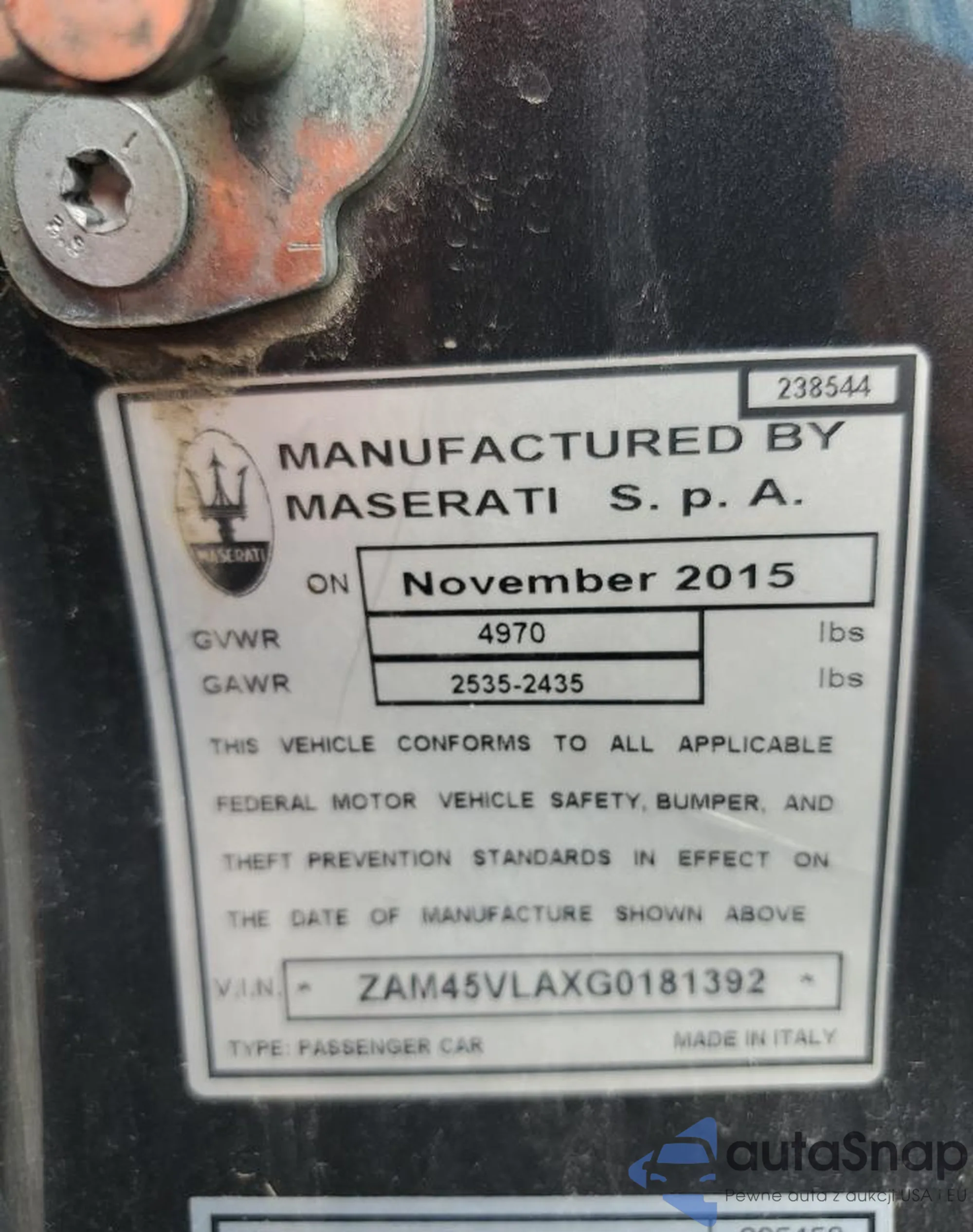 • VIN ZAM45VLAXG0181392