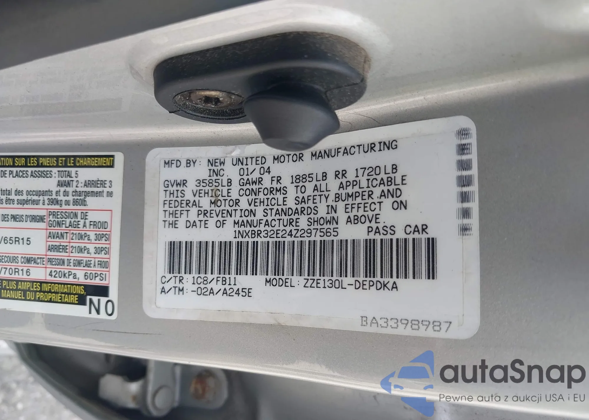 • VIN 4T1BF3EKXBU608960