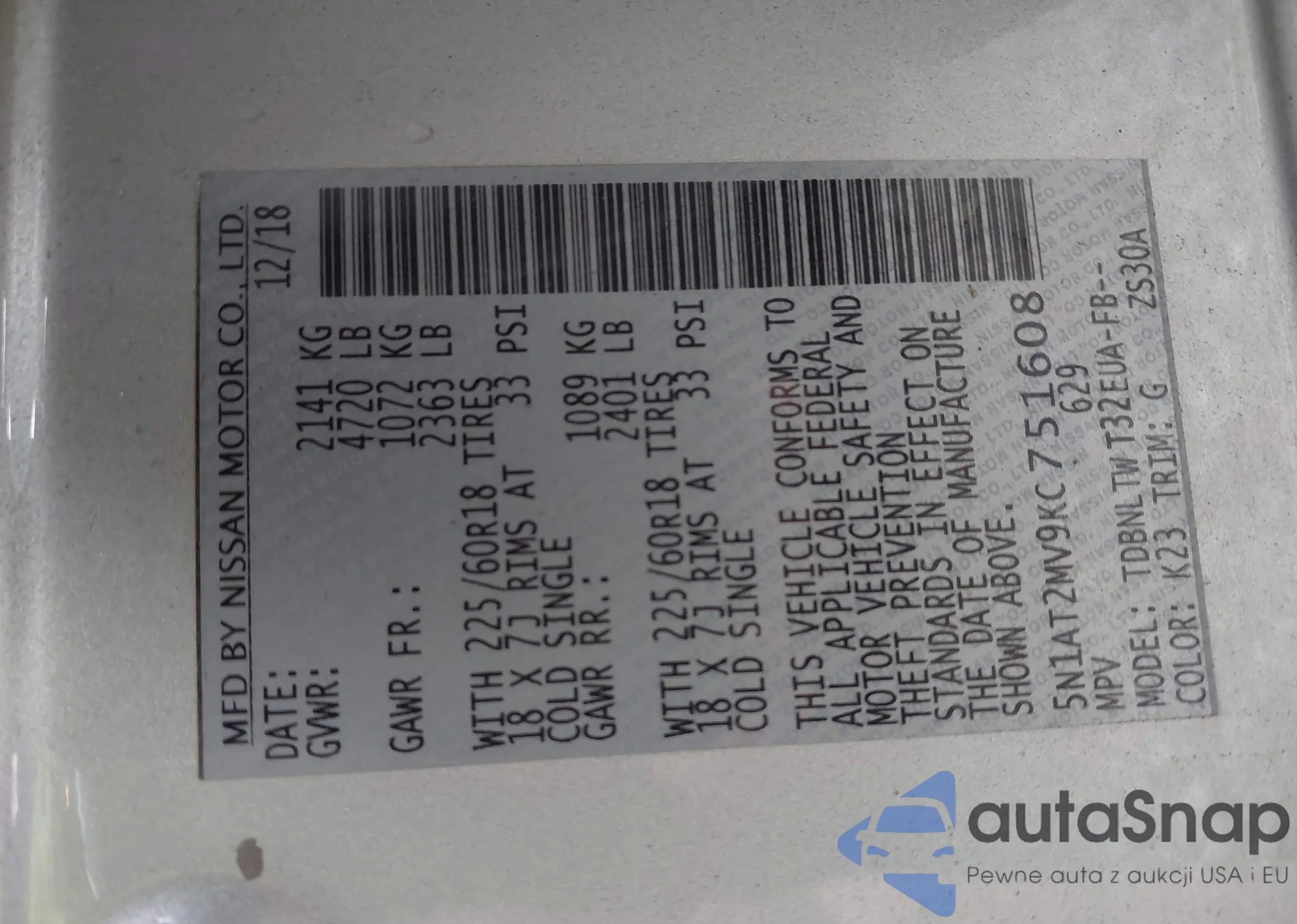LOT: 43076739 VIN: 3N1CN7AP8KL801660