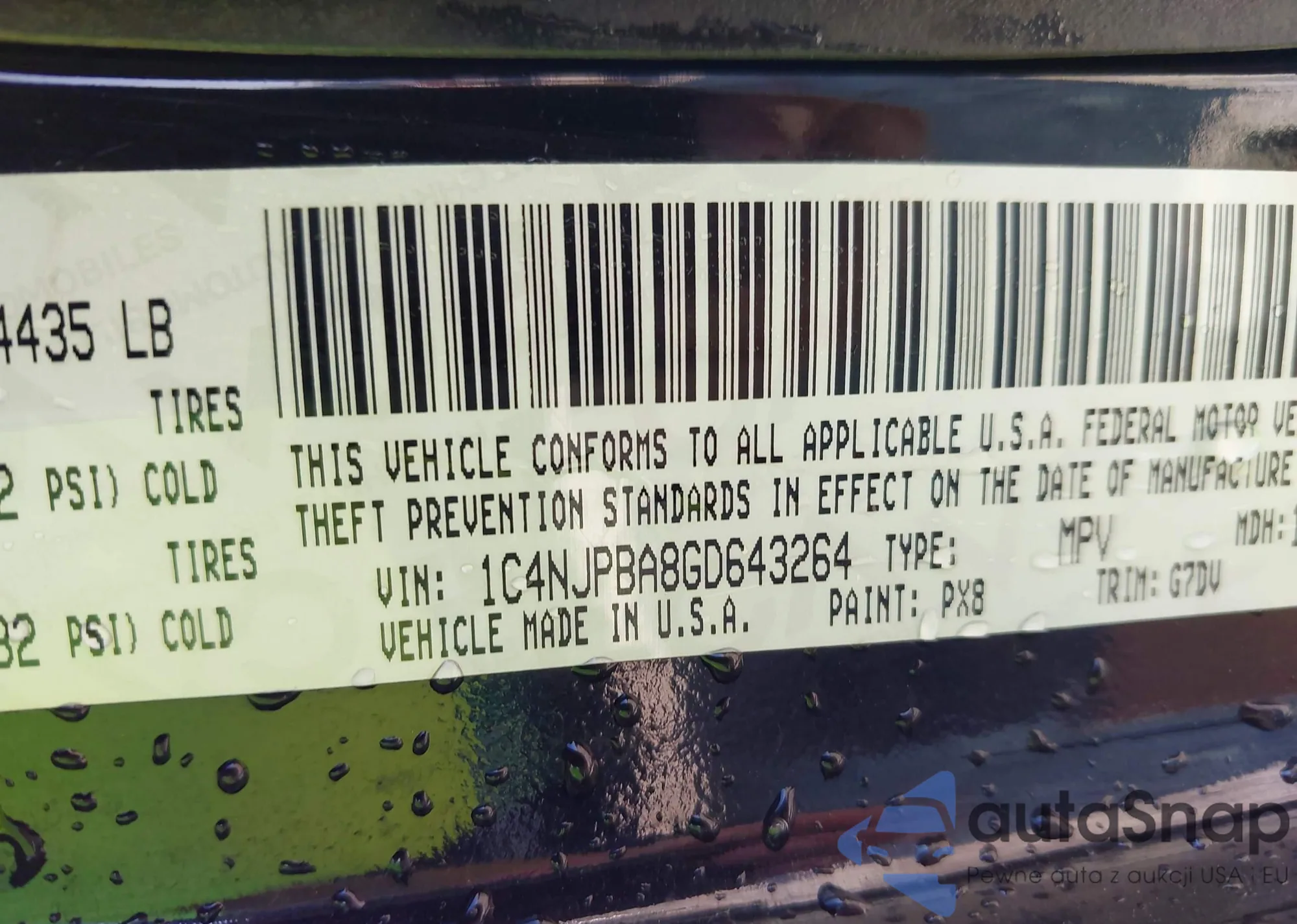 LOT: 43070330 VIN: 1C4NJPBA8GD643264