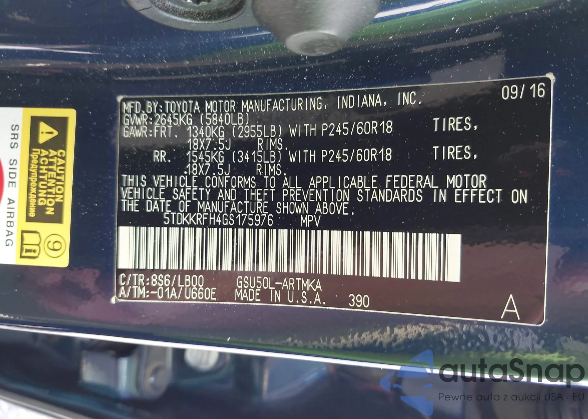 LOT: 42858965 VIN: 5TDKKRFH4GS175976