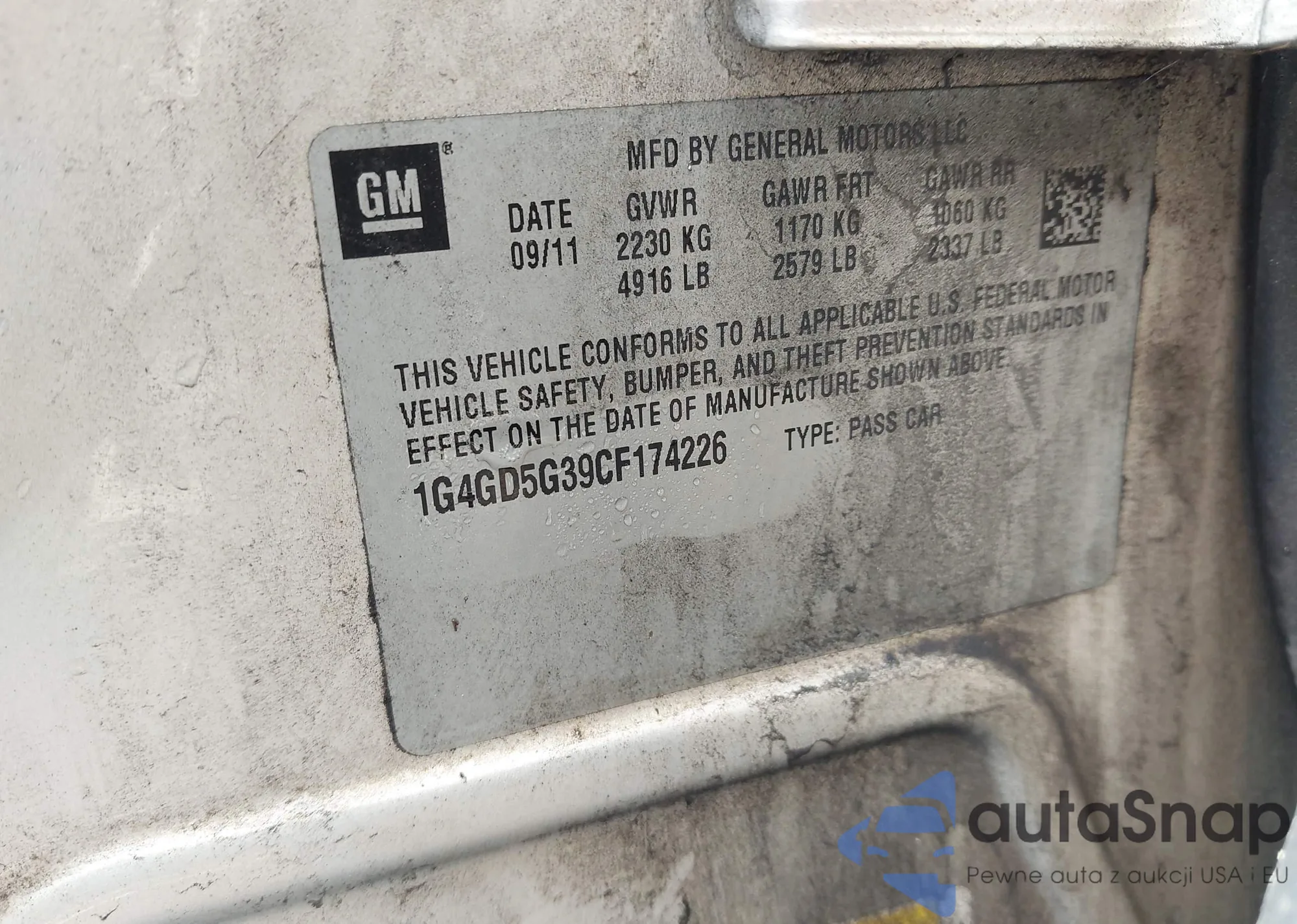 LOT: 42970679 VIN: 1G4GD5G39CF174226