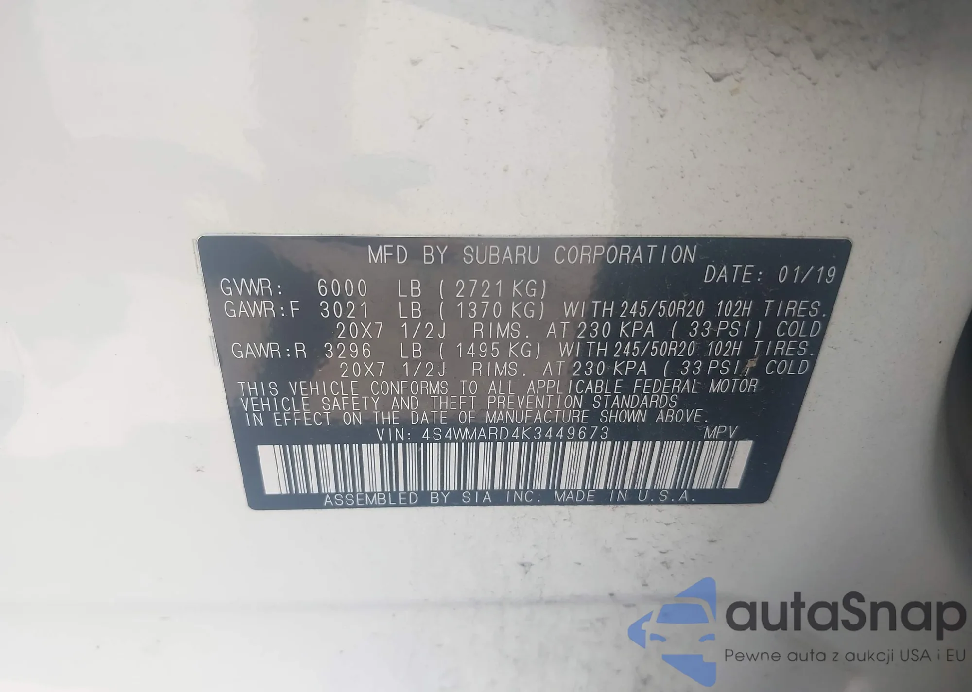 LOT: 42879780 VIN: 4S4WMARD4K3449673
