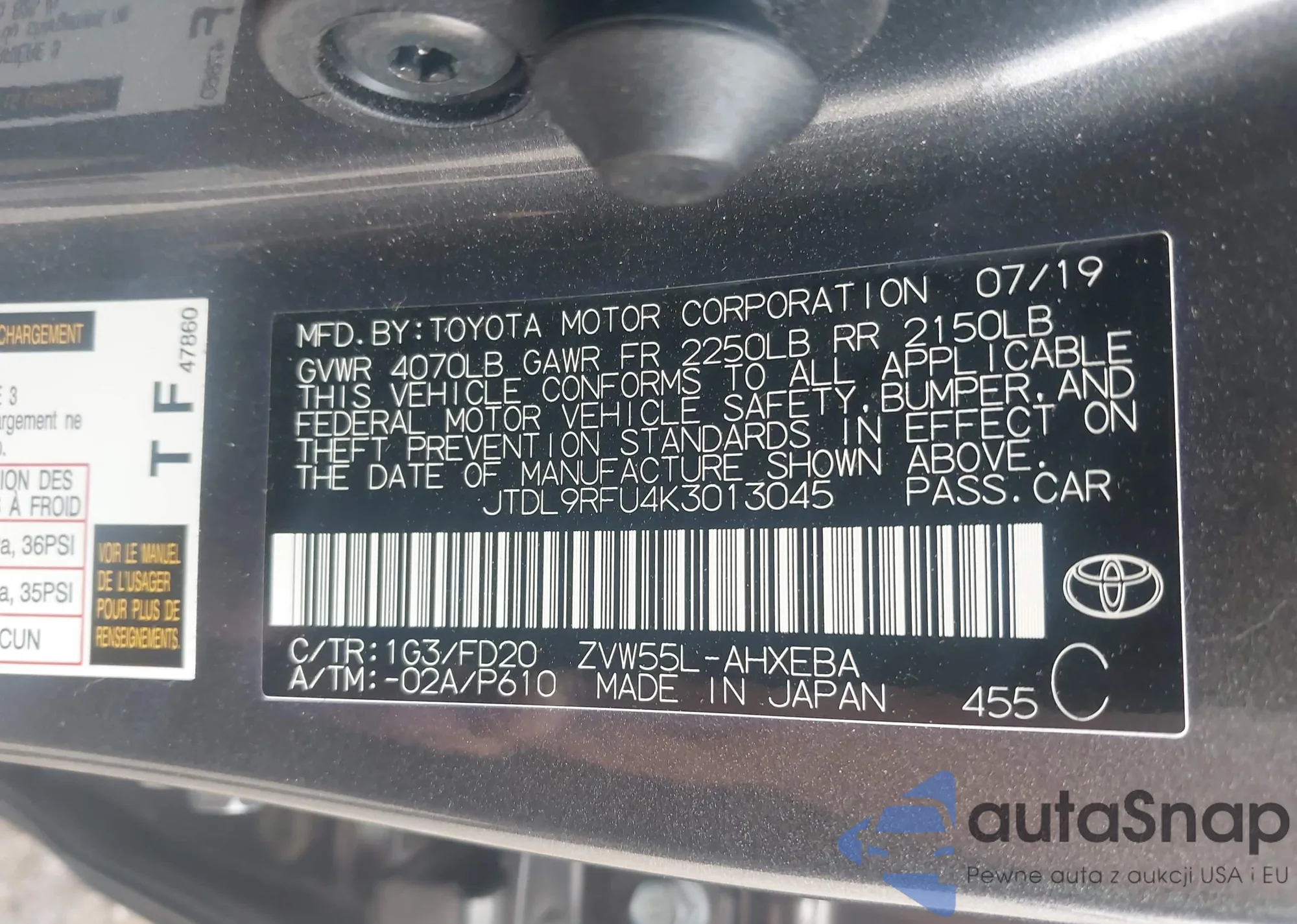 LOT: 42880957 VIN: JTDL9RFU4K3013045