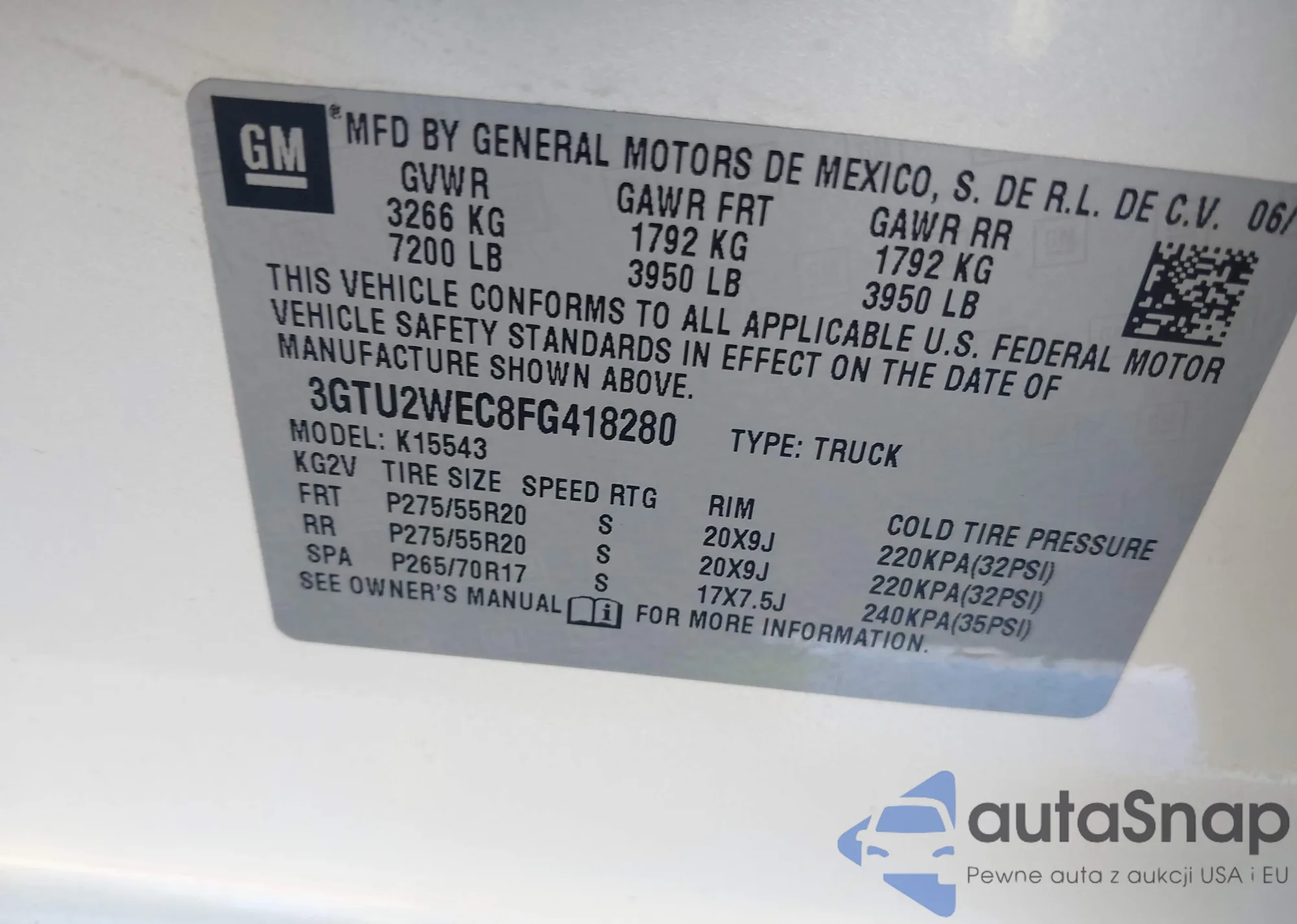 • VIN 3GTU2WEC8FG418280