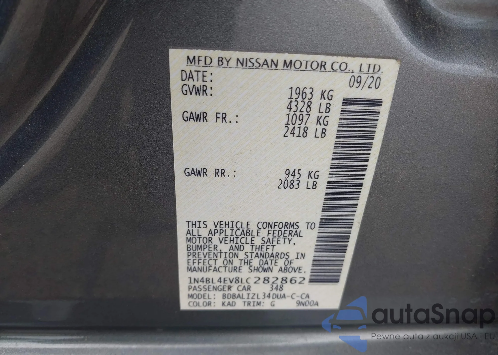 • VIN 1N4BL4EV8LC282862