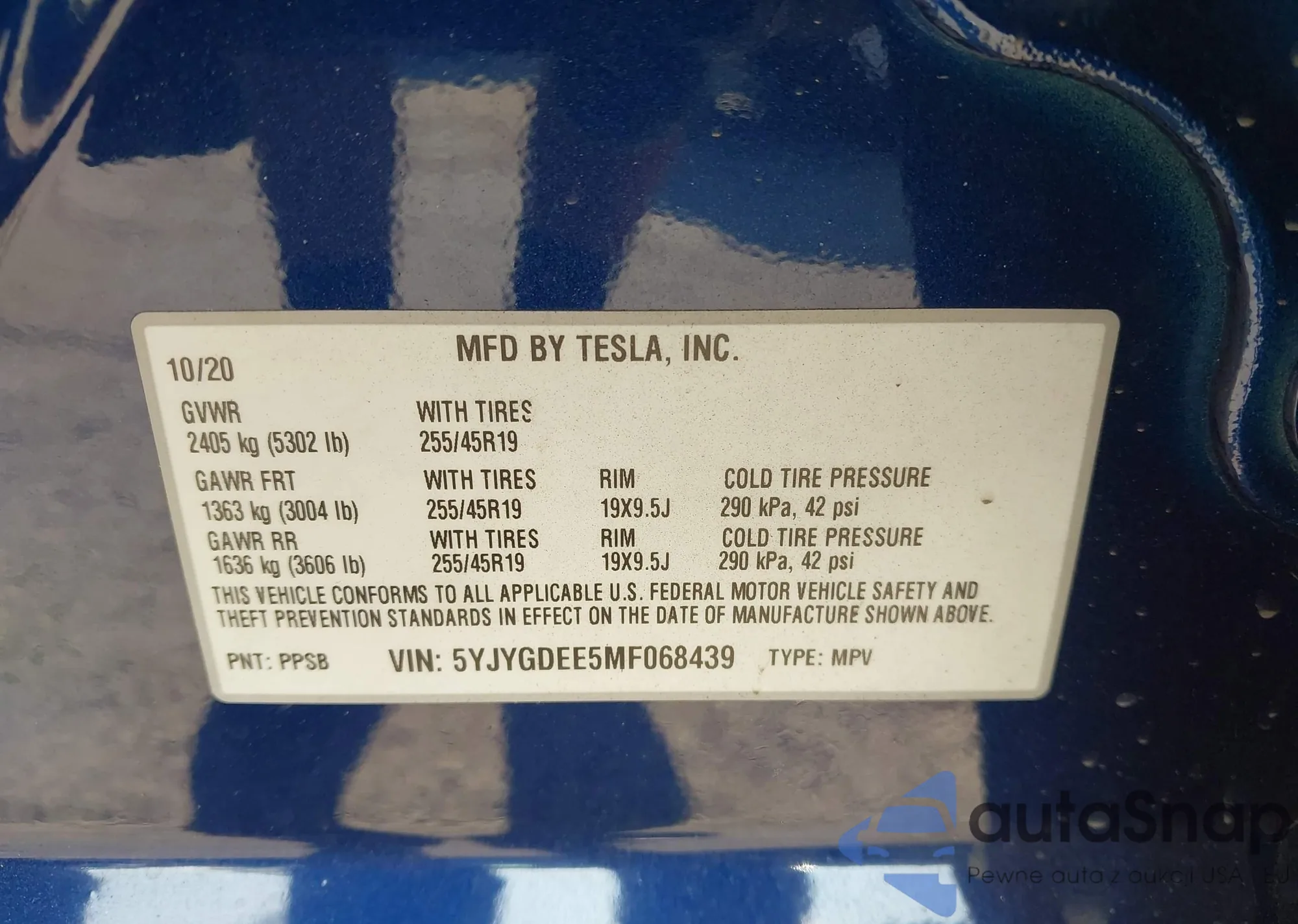 LOT: 42893243 VIN: 5YJYGDEE5MF068439
