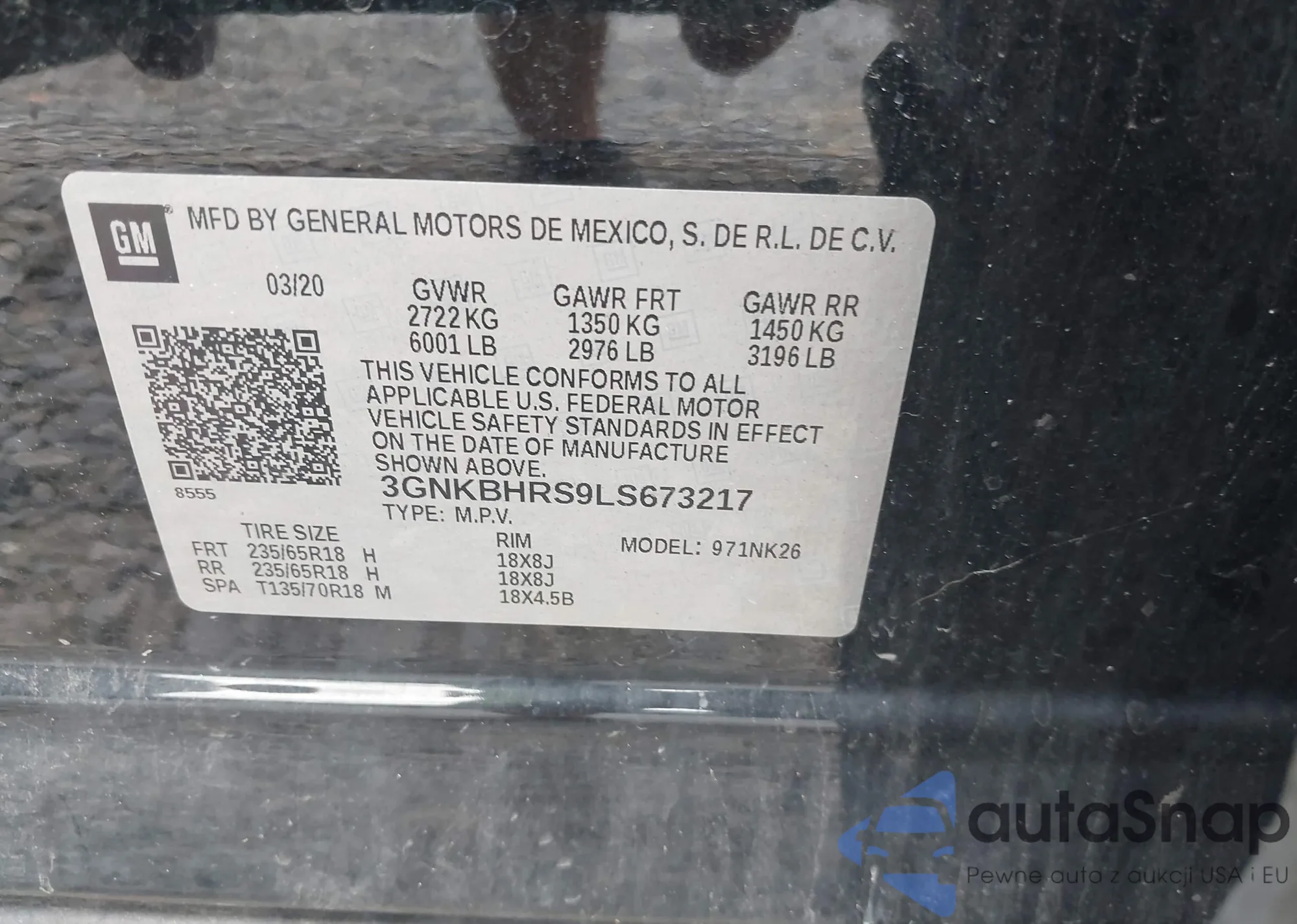• VIN KL77LKEP4SC185370