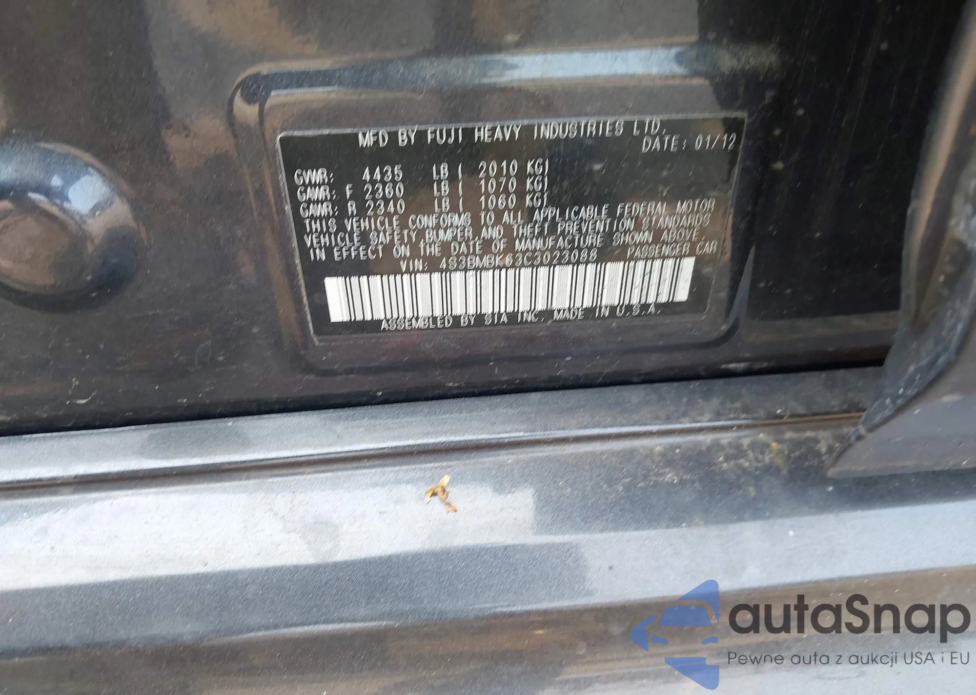 LOT: 42851449 VIN: 4S3BMBK63C3023088