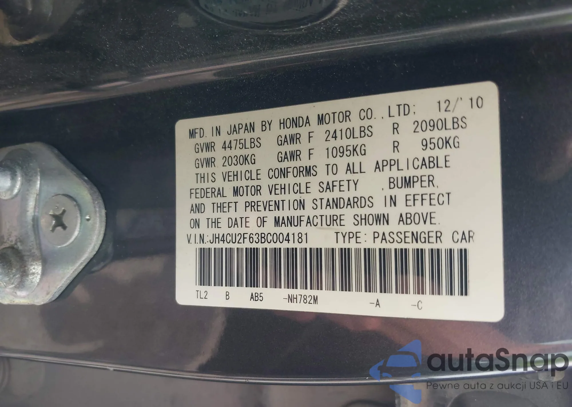 • VIN 1N4BL4BV3LC204557