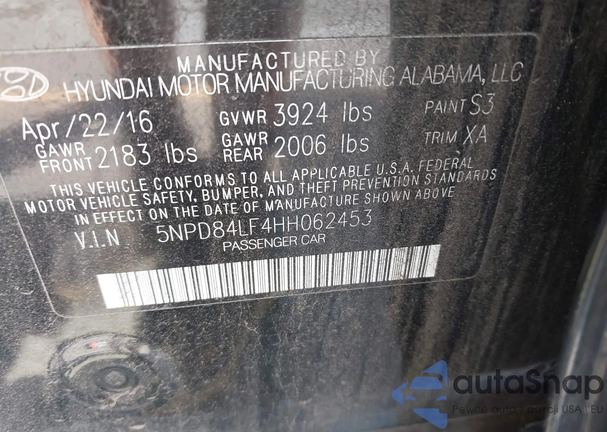 • VIN 5NPD84LF4HH062453