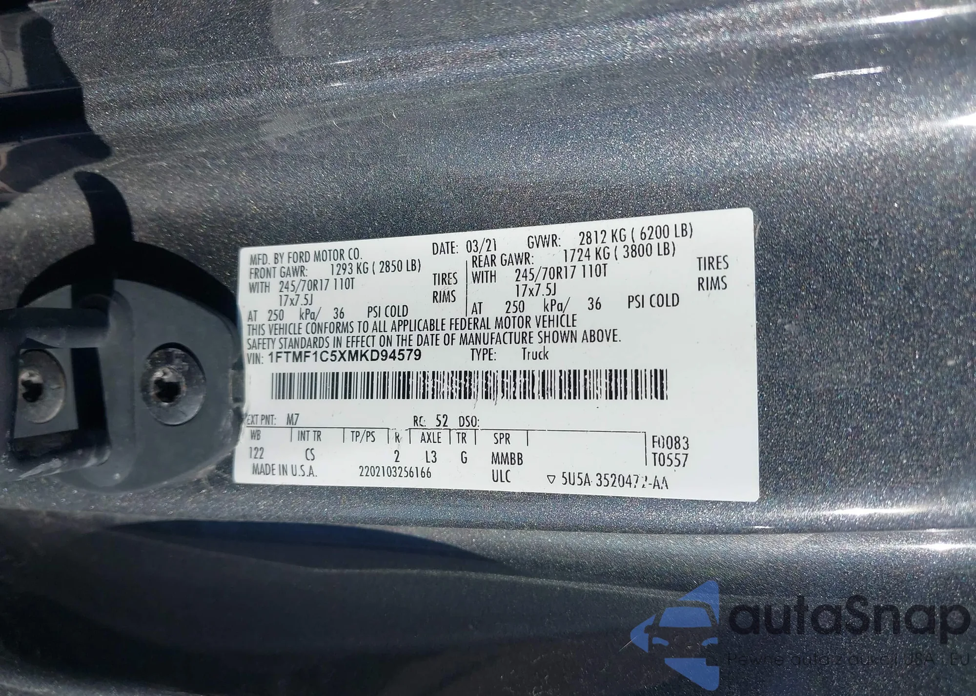 • VIN 1FTMF1C5XMKD94579