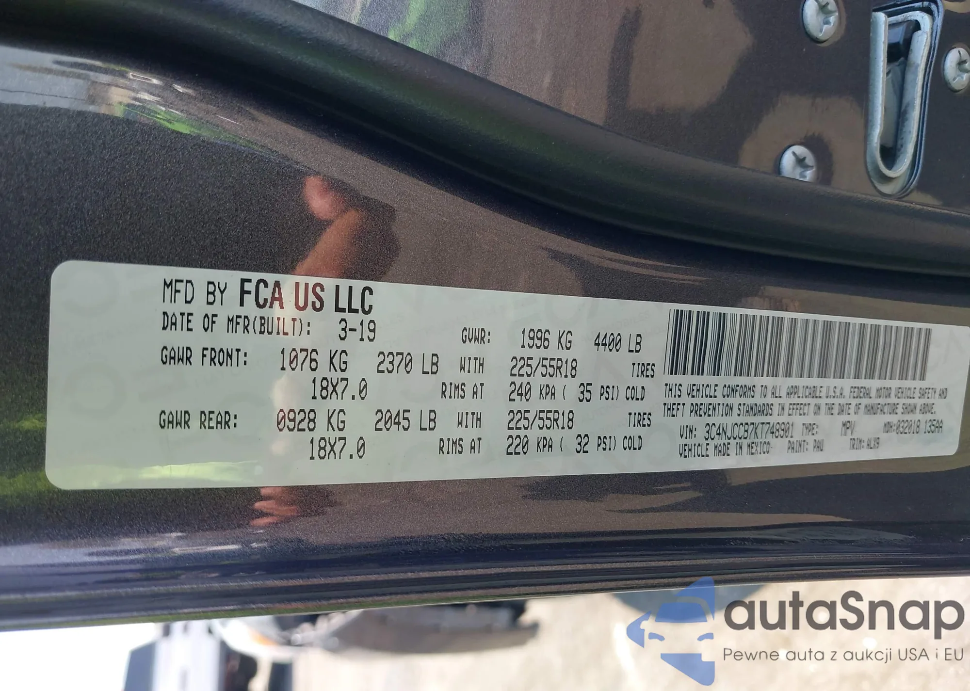 • VIN 3C4NJCCB7KT748901