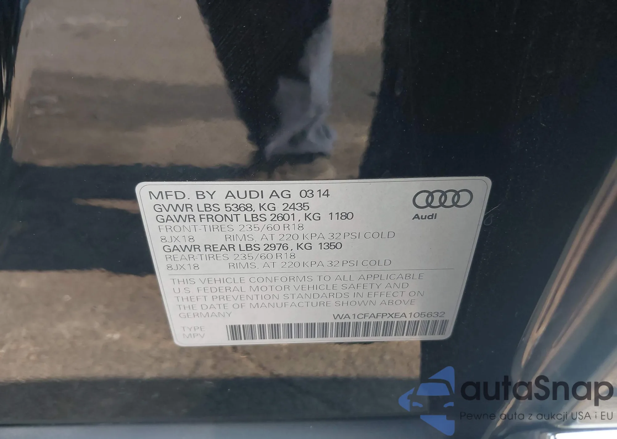 LOT: 42735974 VIN: WA1CFAFPXEA105632