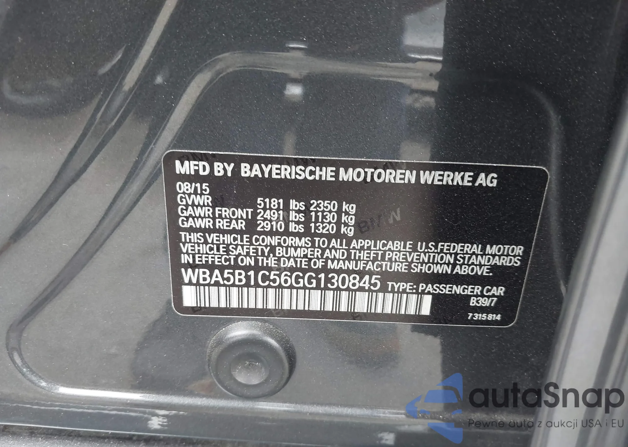 • VIN WBA5B1C56GG130845
