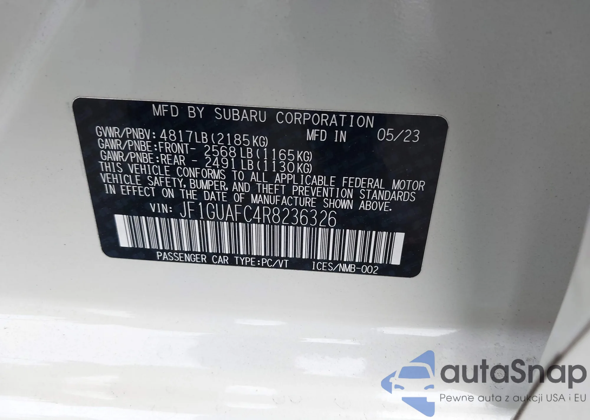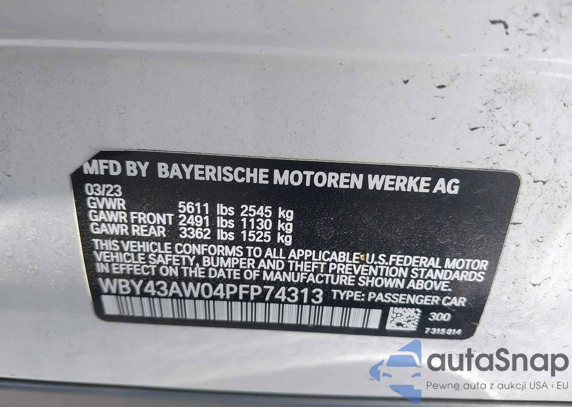 LOT: 42851247 VIN: WBY43AW04PFP74313