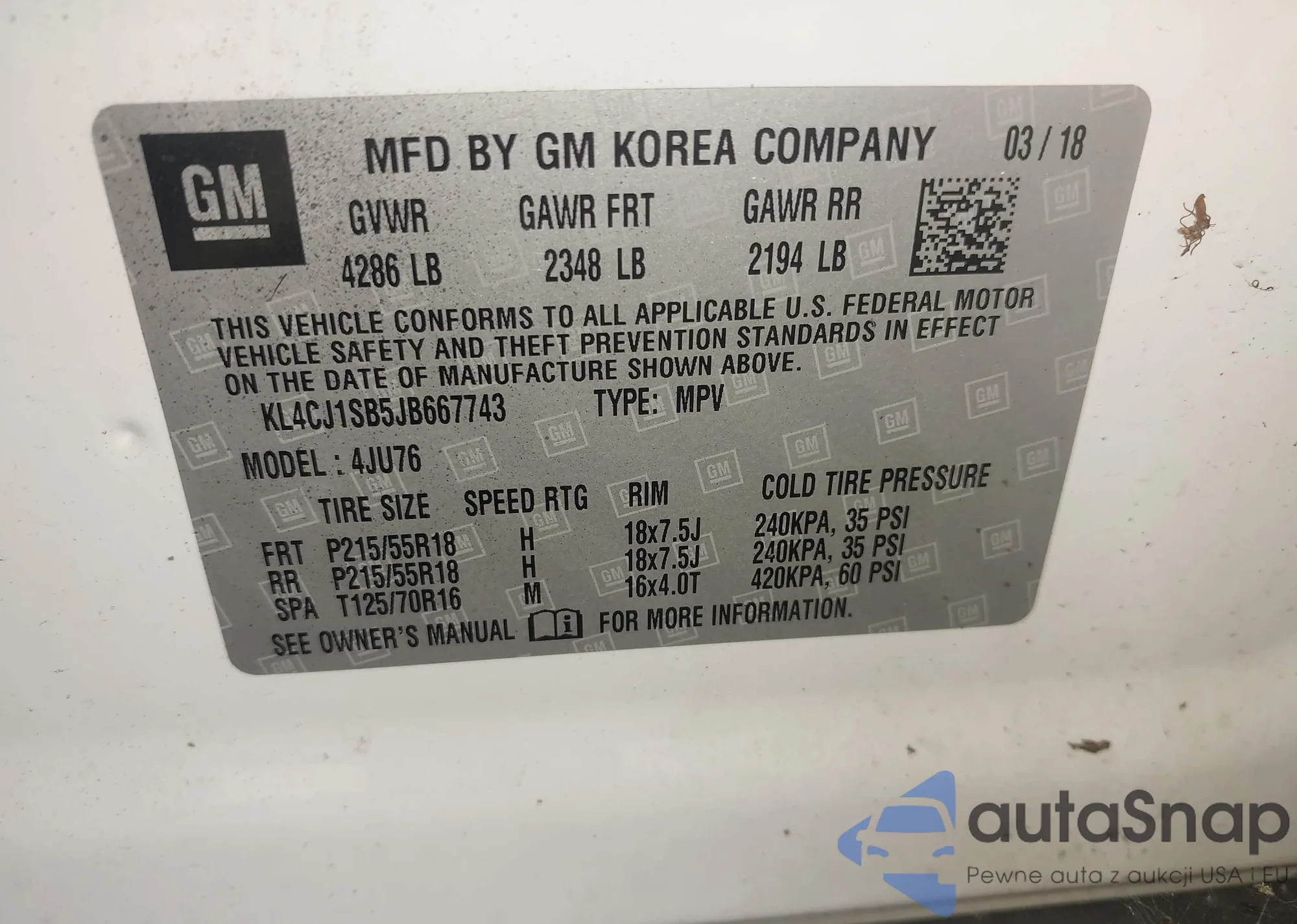 • VIN KL4CJ1SB5JB667743