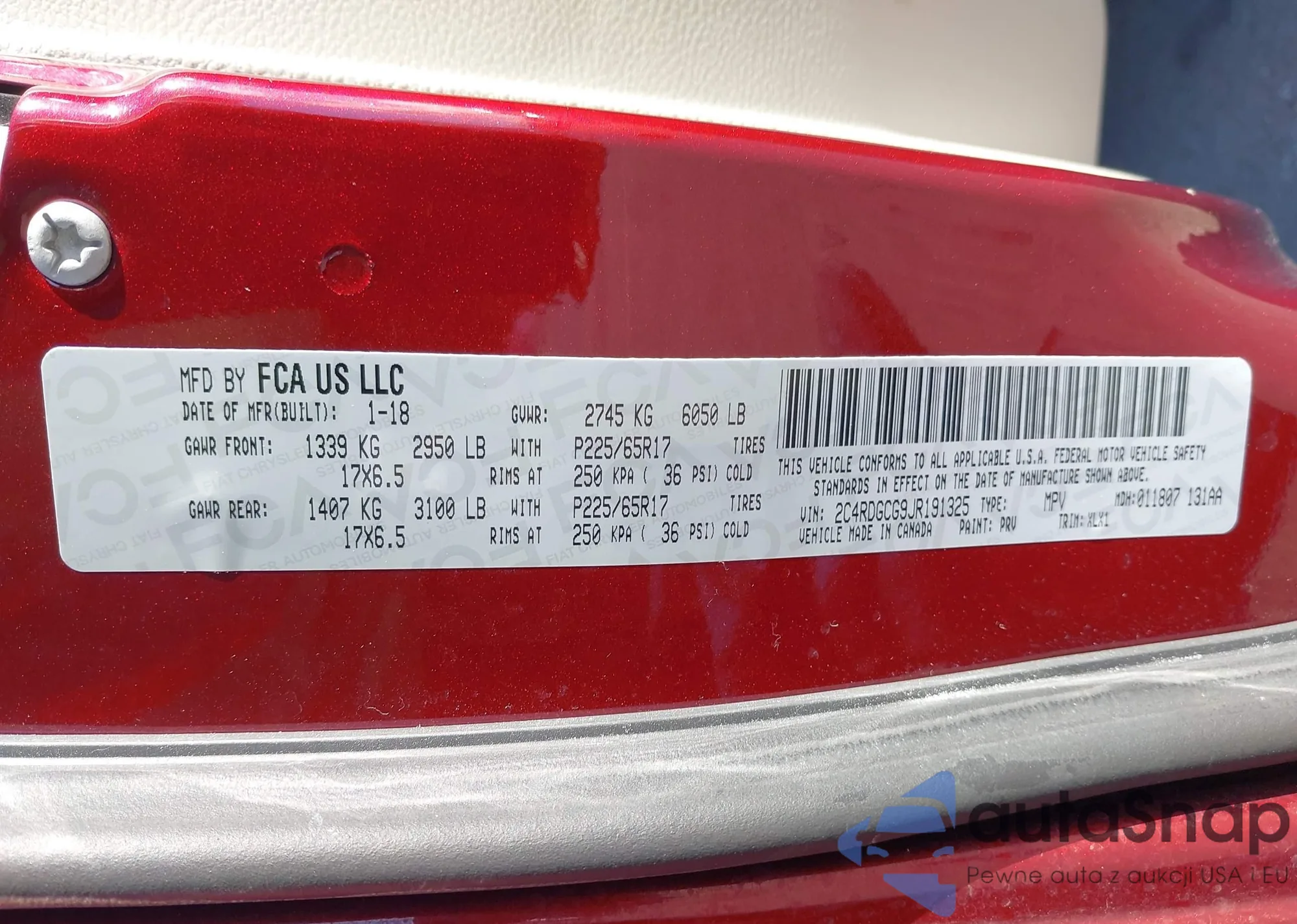 • VIN 2C4RDGCG9JR191325