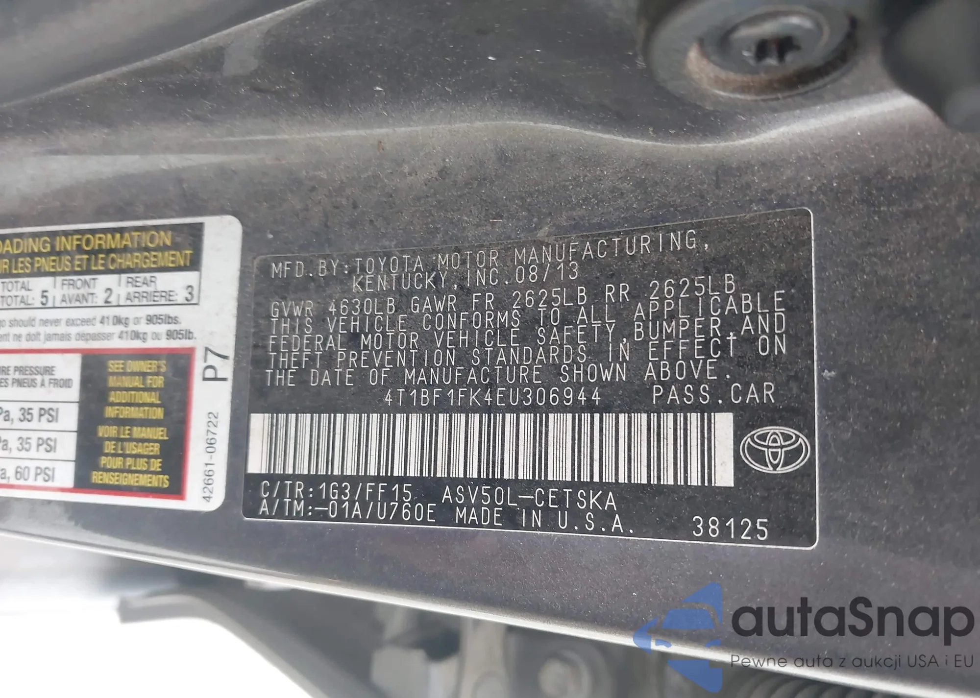 • VIN 4T1B11HK2KU194555