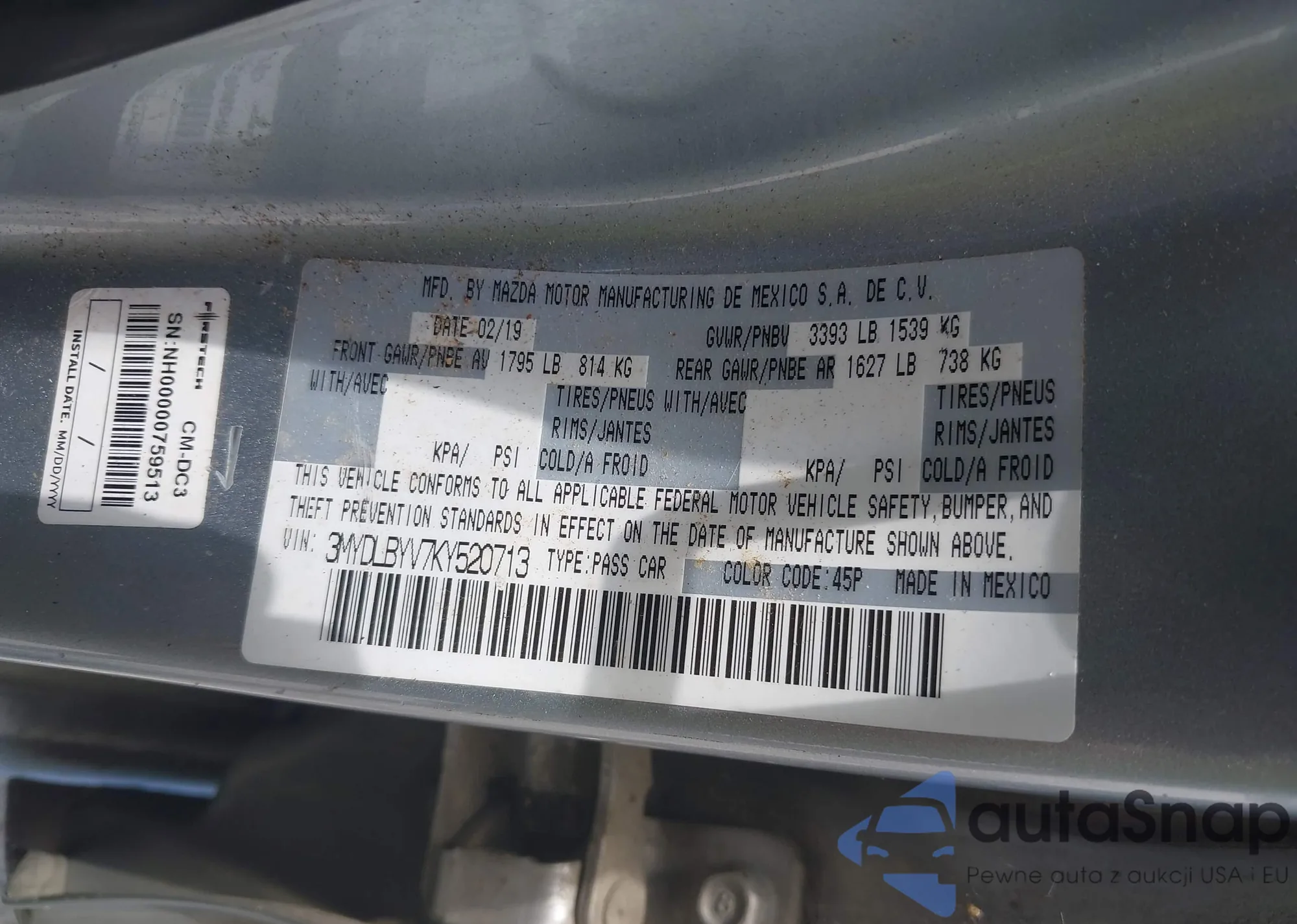 LOT: 42670353 VIN: 3MYDLBYV7KY520713