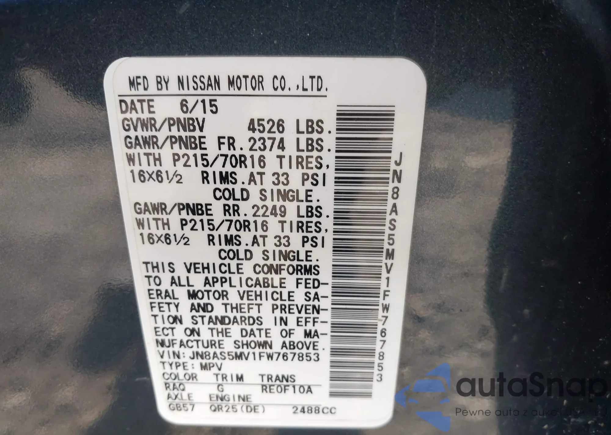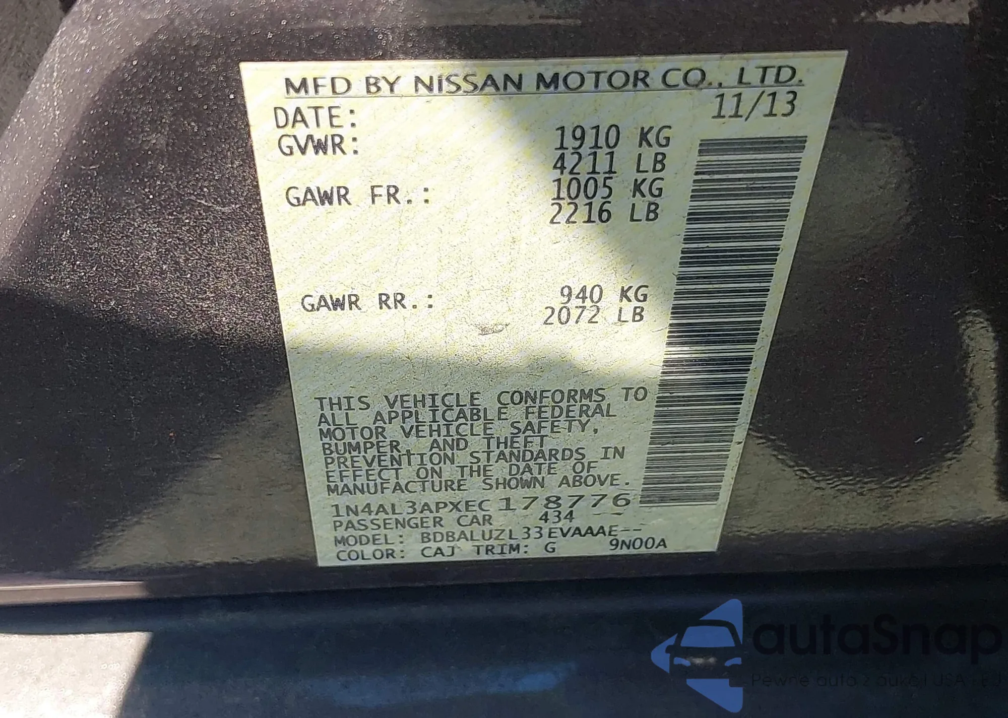 LOT: 43067598 VIN: 1N4AL3APXEC178776