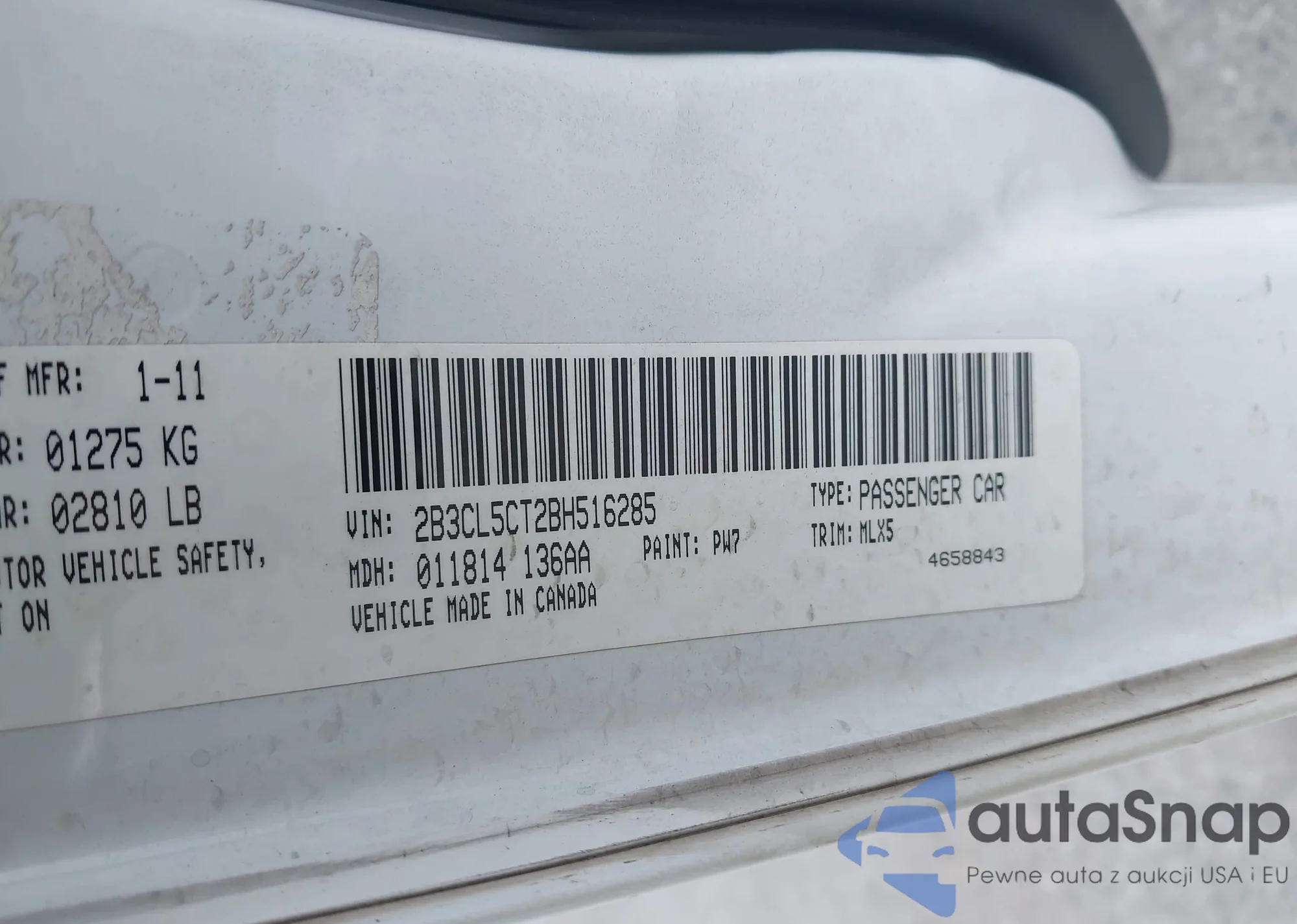 • VIN 2B3CL5CT2BH516285