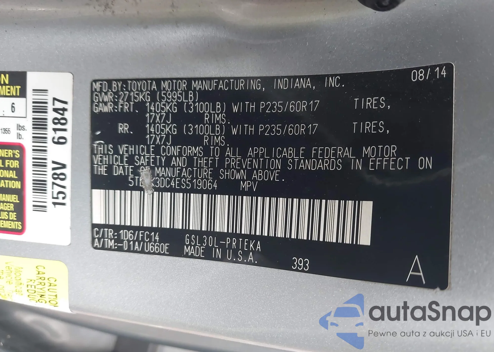 LOT: 43048225 VIN: 5TDKK3DC4ES519064