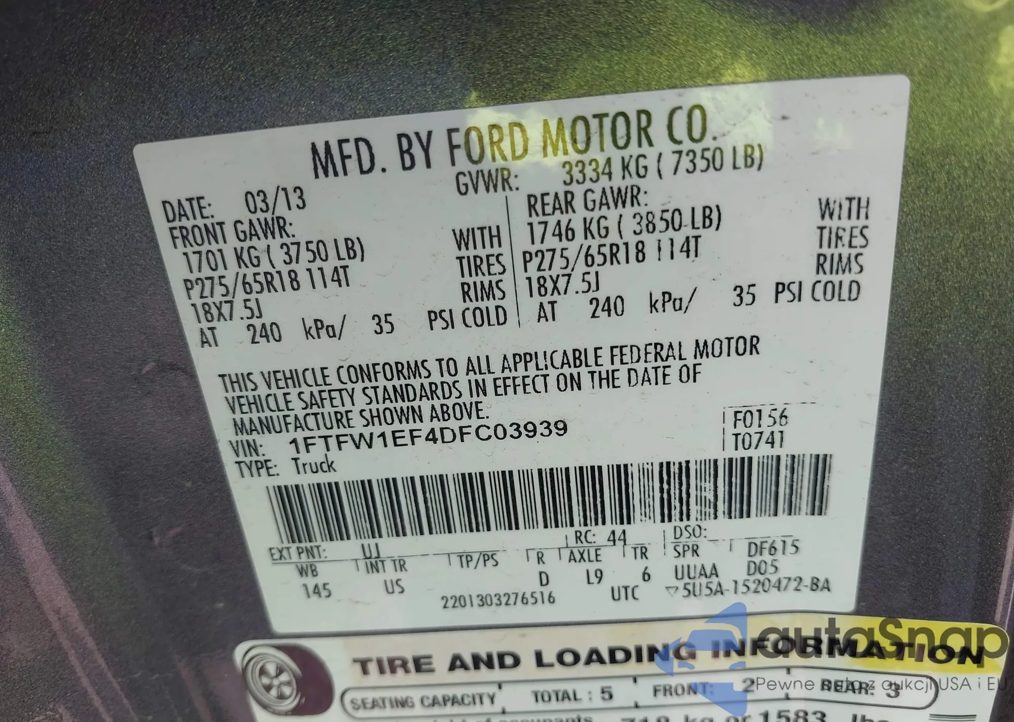 • VIN 1FTFW1EF4DFC03939