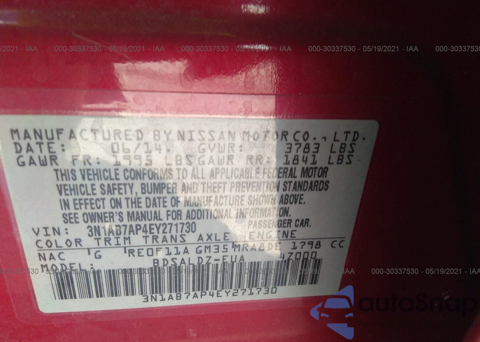 LOT: 42733630 VIN: 1G1AT58H997128222