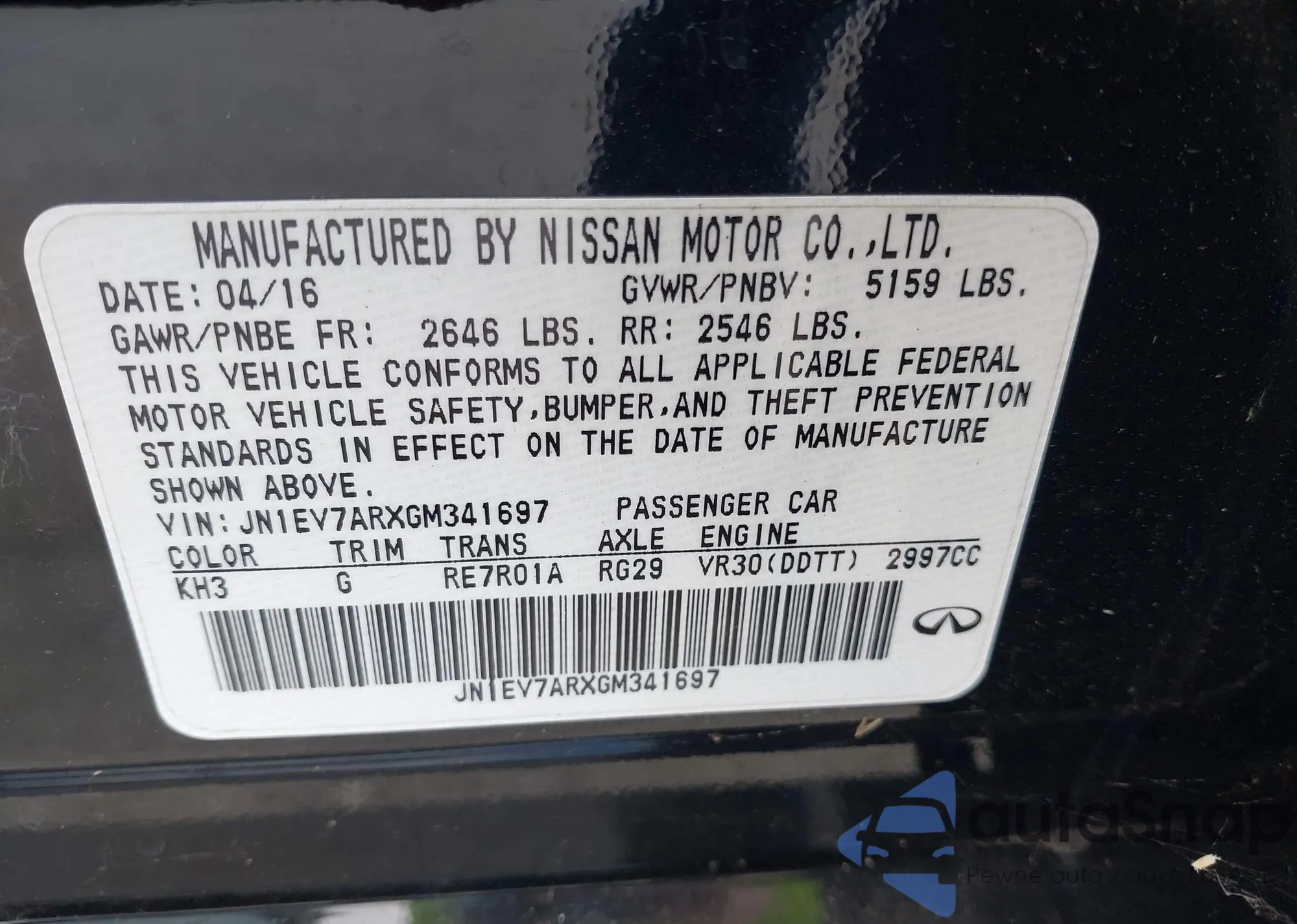 LOT: 43016052 VIN: JN1EV7ARXGM341697