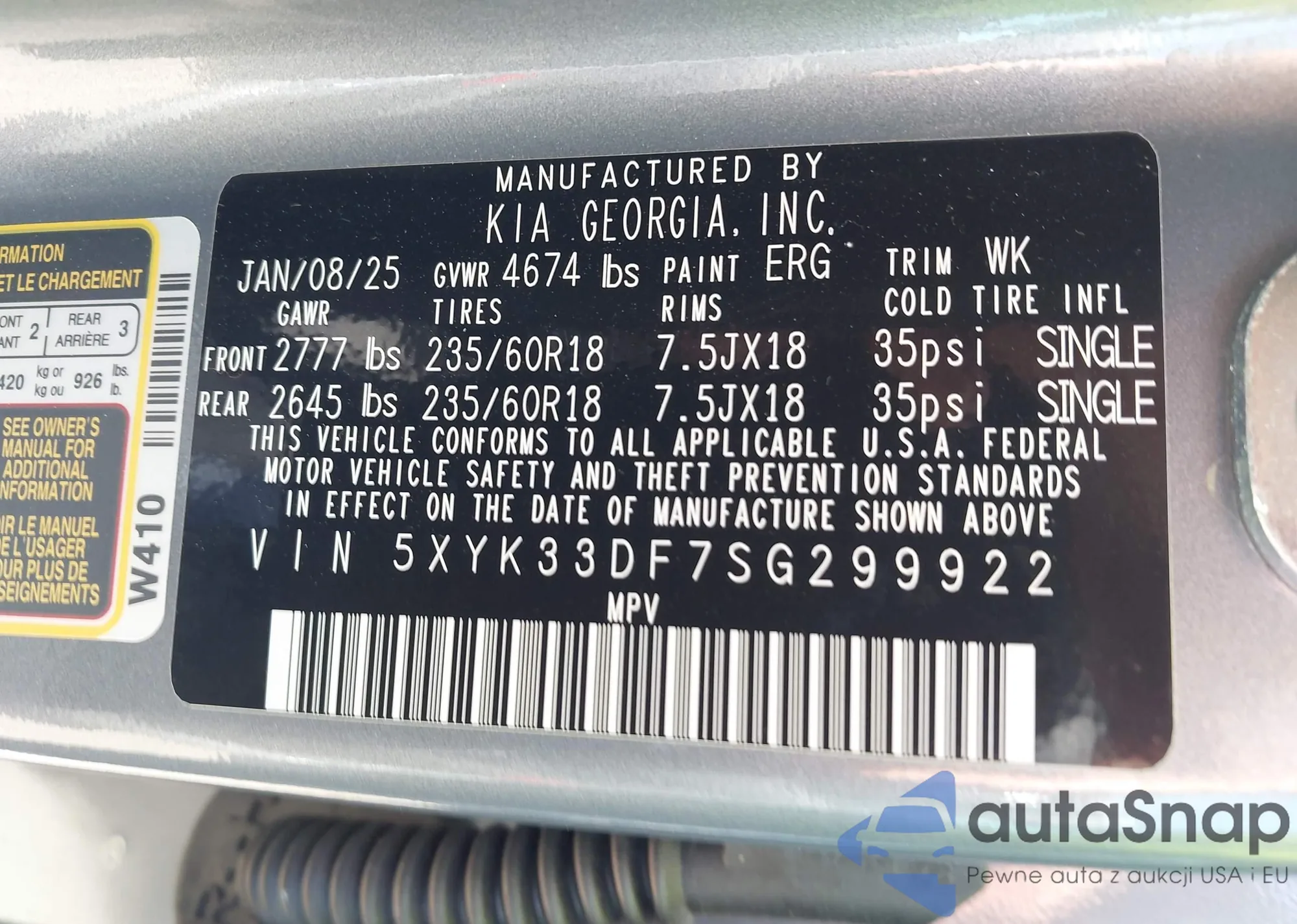 • VIN 5XXGV4L25JG176997
