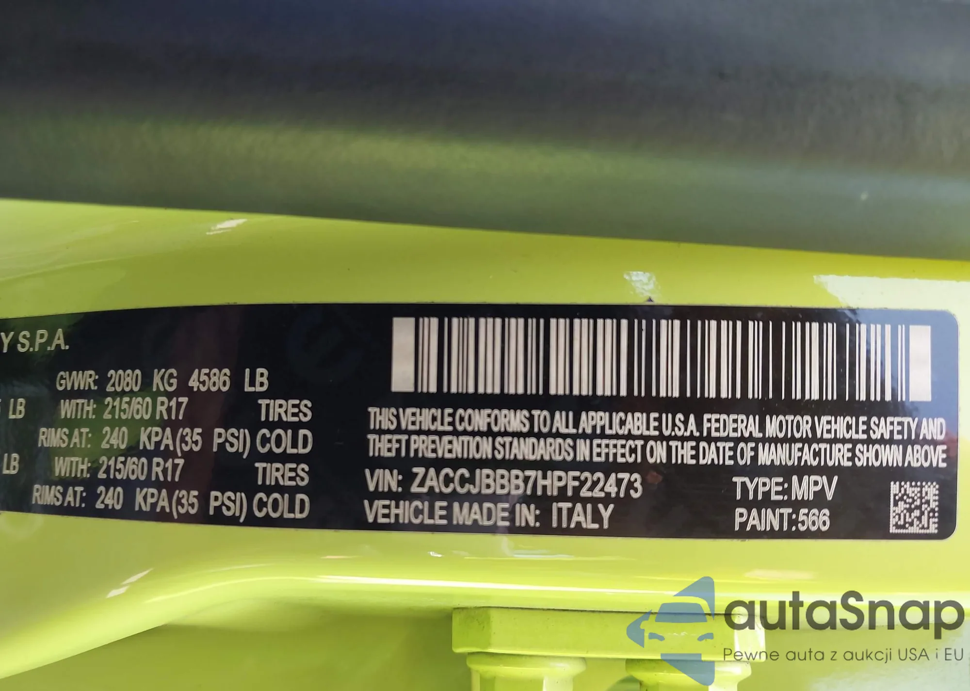• VIN ZACCJBBB7HPF22473