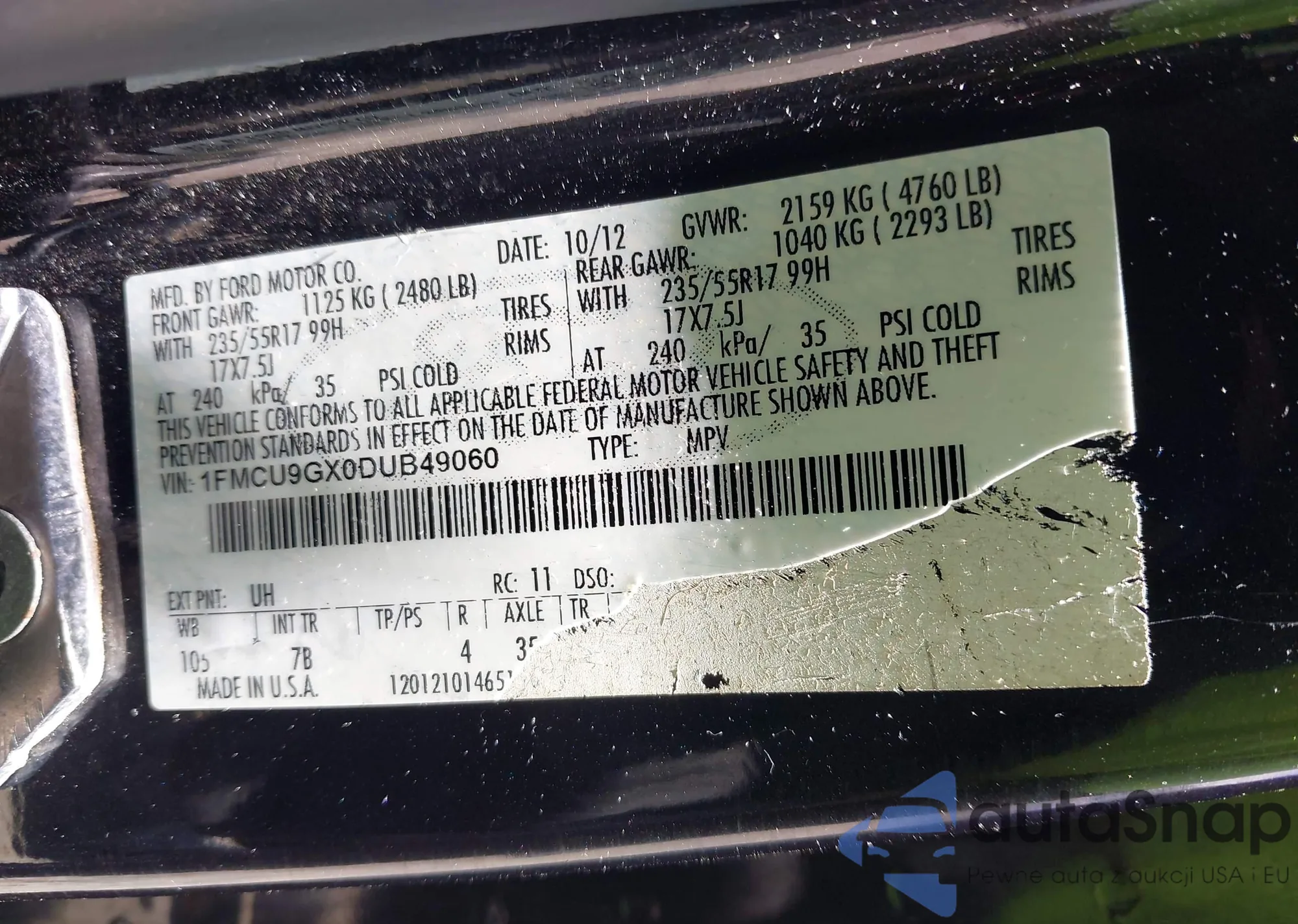 • VIN 1FMCU9GX0DUB49060