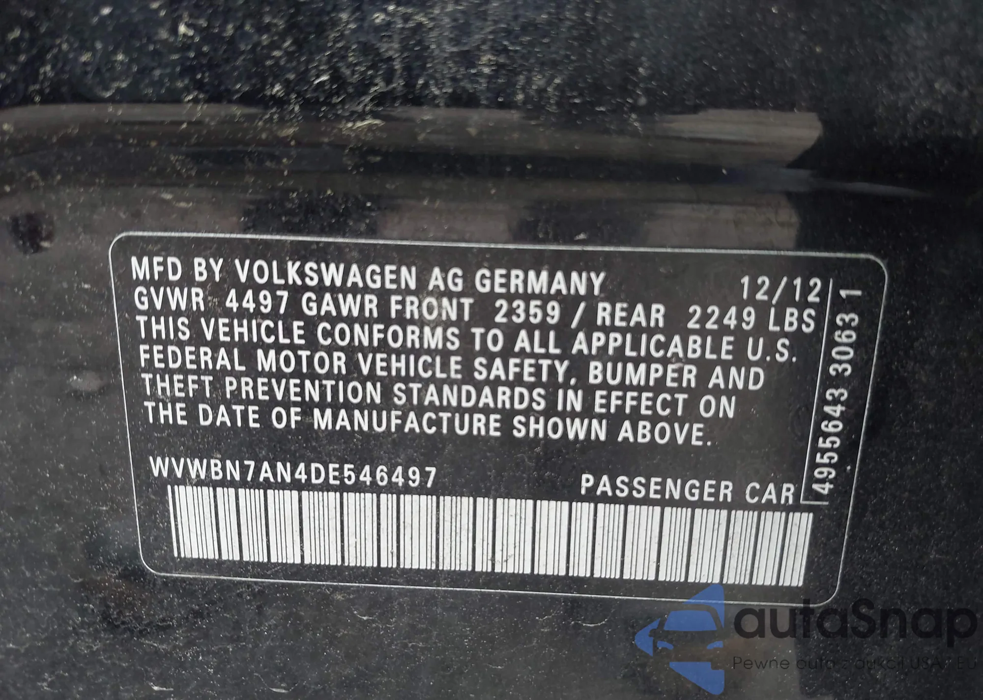 • VIN WVWBN7AN4DE546497