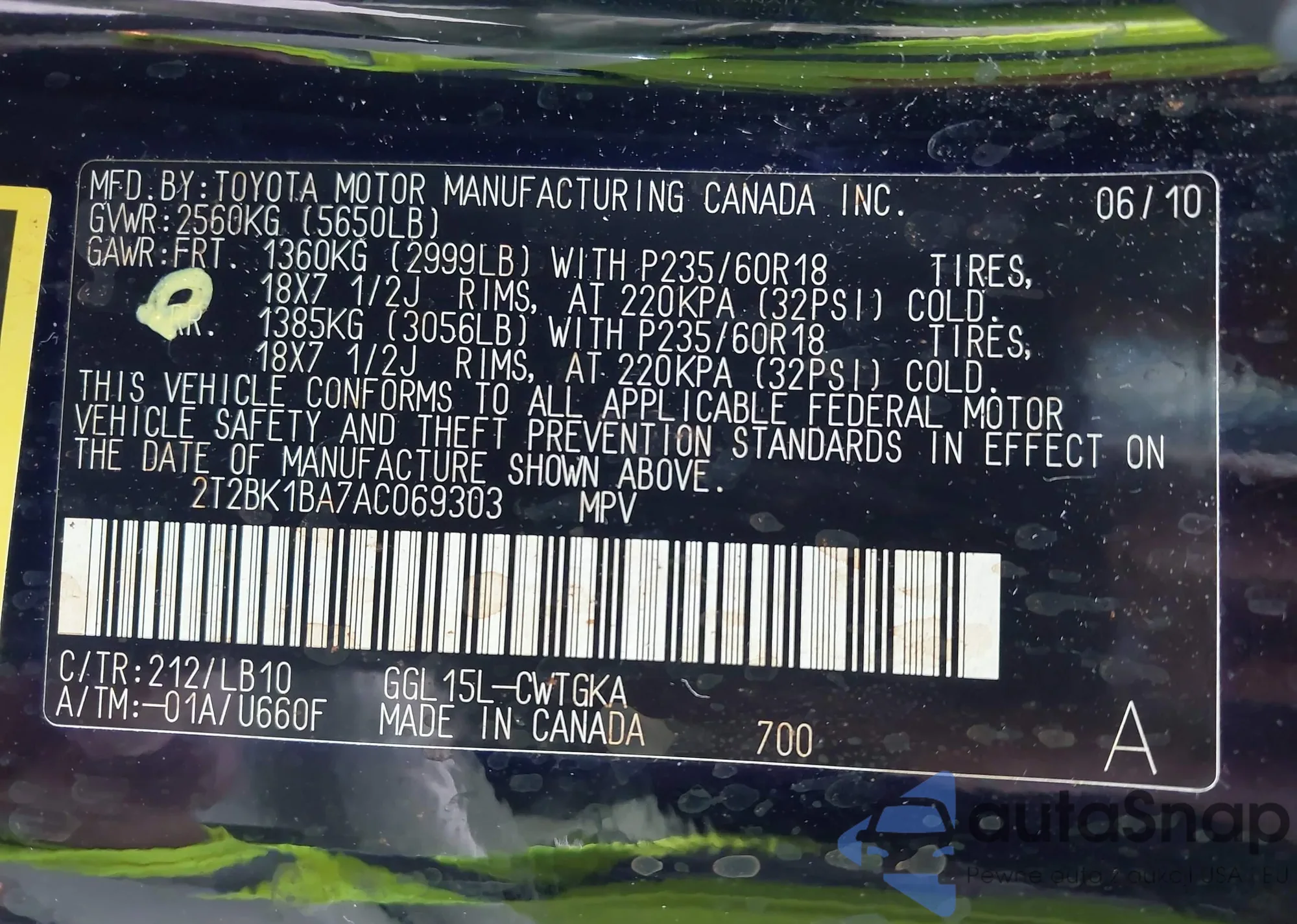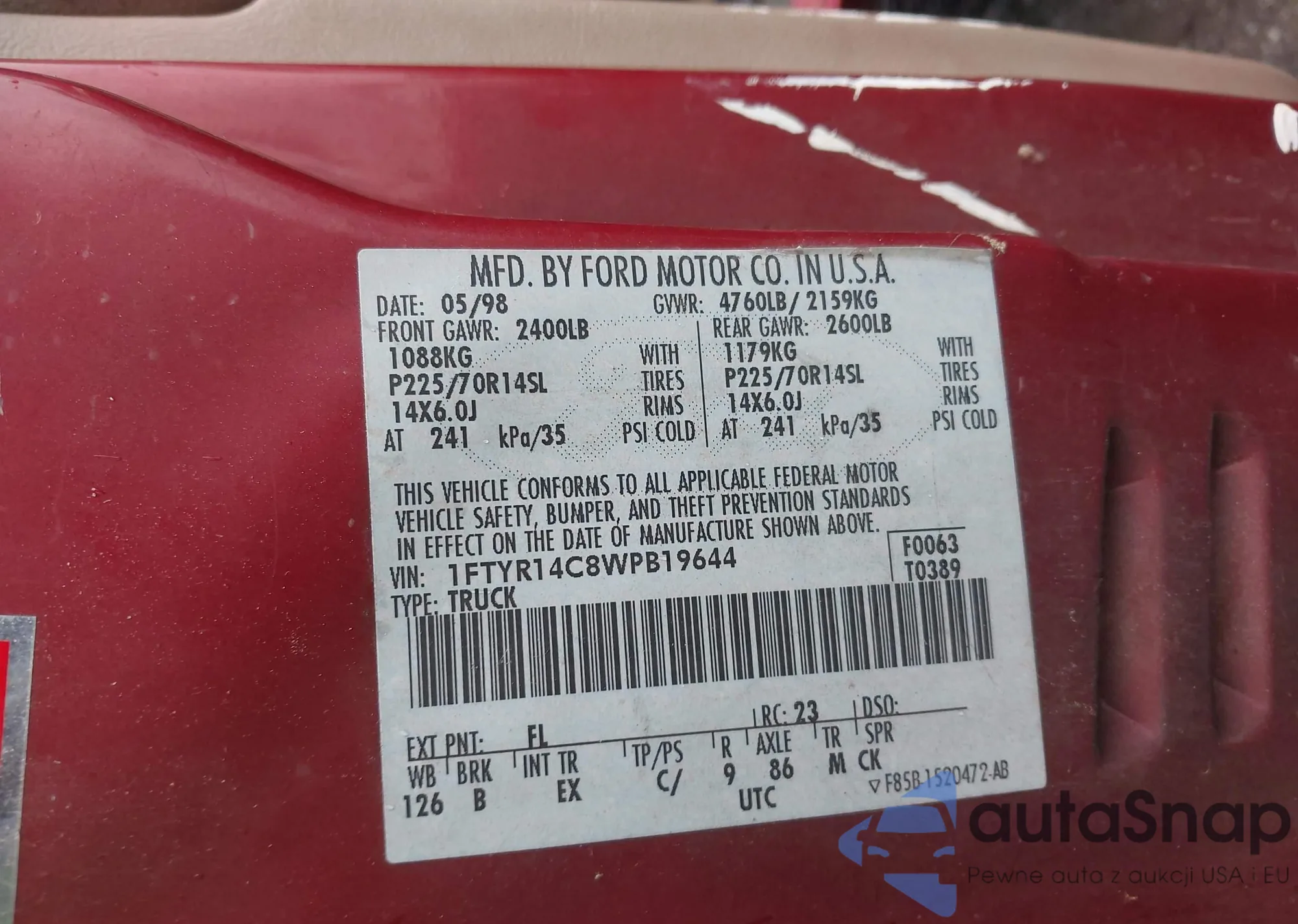 • VIN 1FTFX1EV2AFC86240
