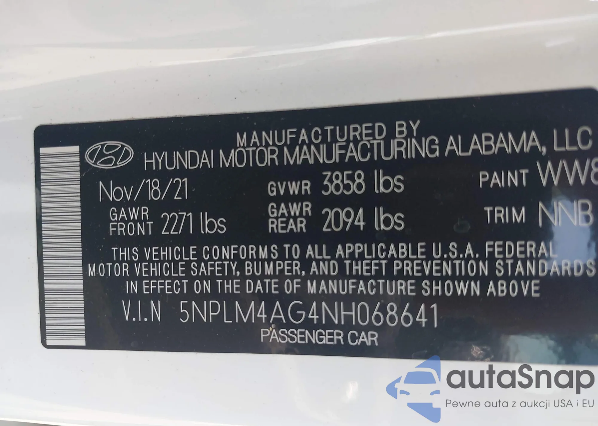 • VIN 5NPLM4AG4NH068641