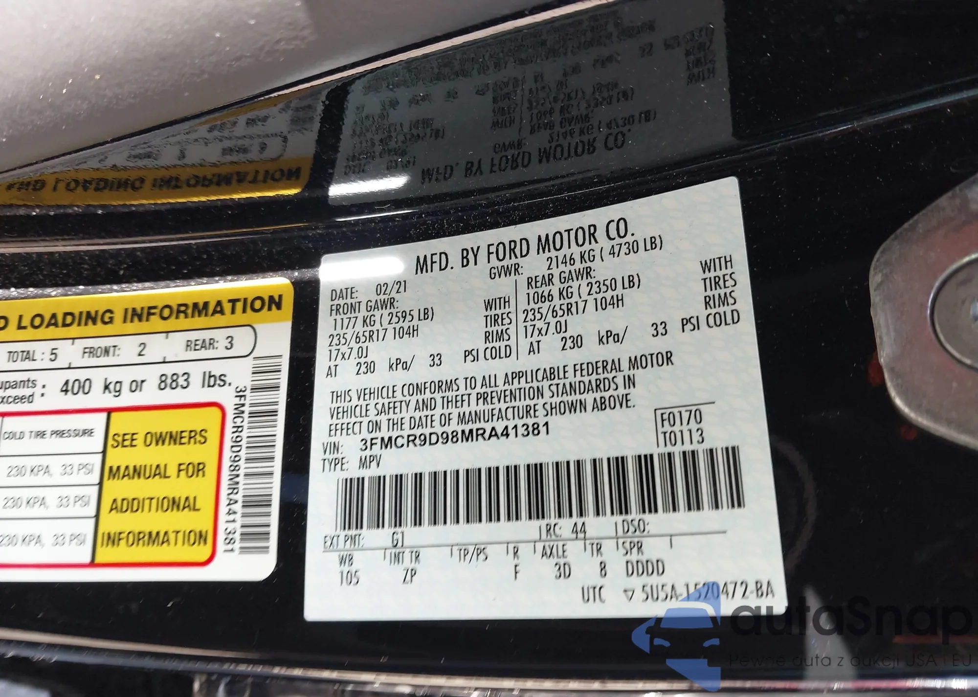 LOT: 42562908 VIN: 3FMCR9D98MRA41381