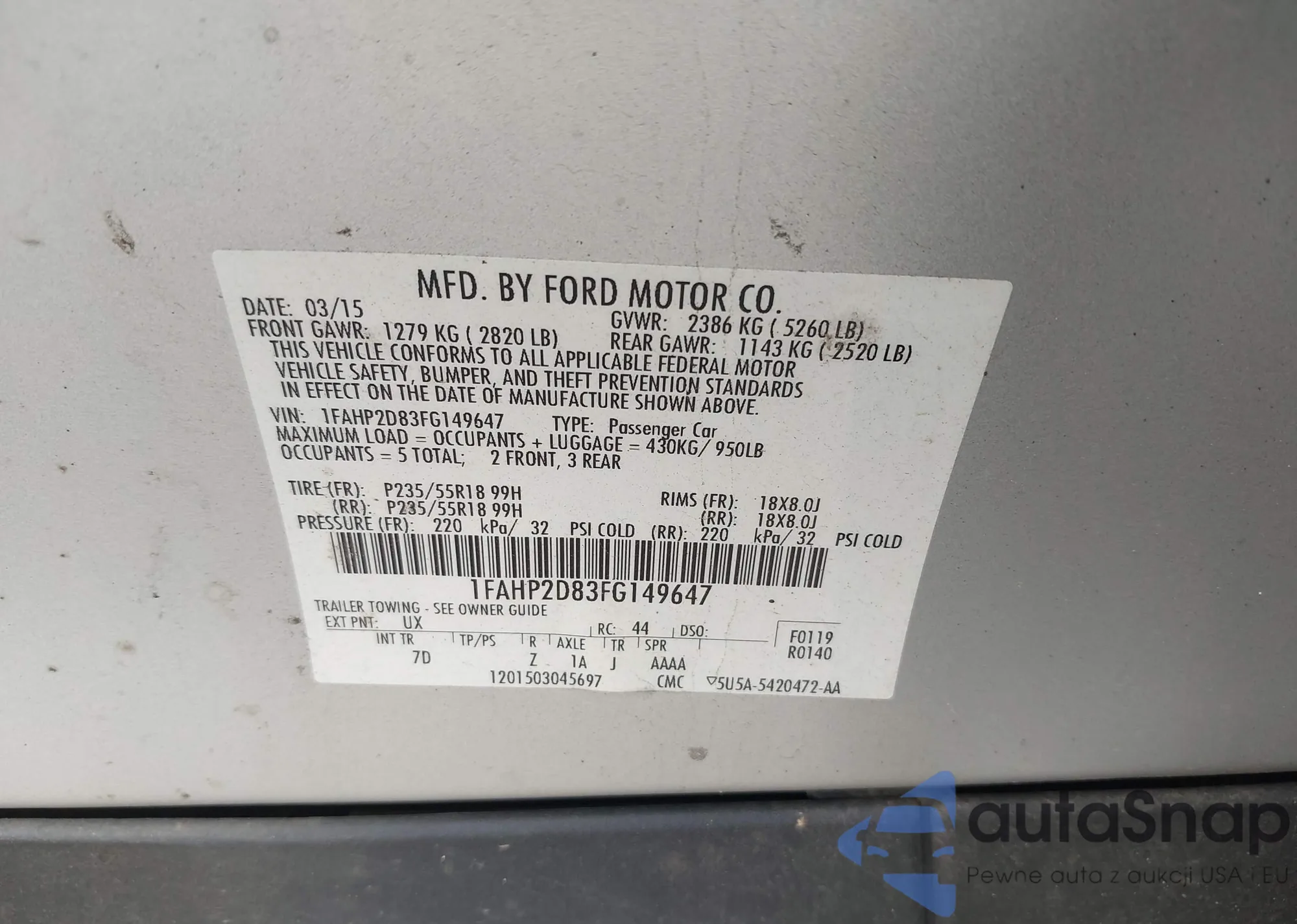 LOT: 42686767 VIN: 1FAHP2D83FG149647